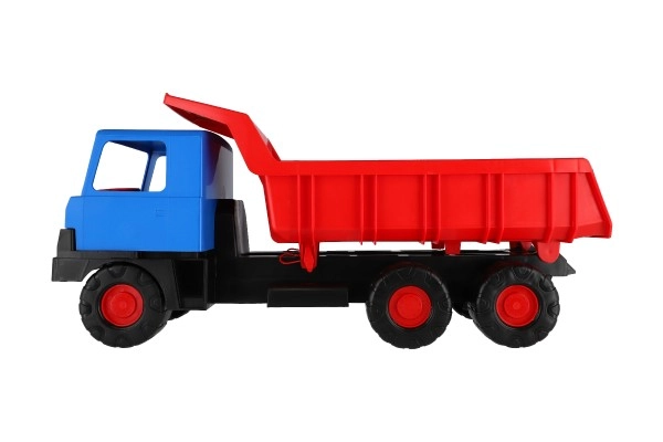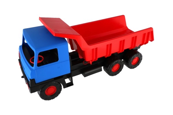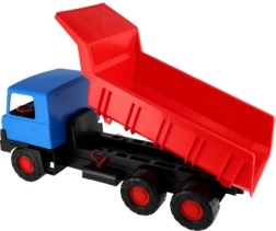 Tugev plastikust kallurauto sinise kabiini ja punase kallutatava kastiga rõõmustab väikseid ehitajaid nii kodus kui ka liivakastis. Tänu 75 cm pikkusele, vastupidavatele ratastele ja toimivale kallutusele veab see liiva, kivikesi ja mänguasju. Kerge ja ohutu konstruktsioon toetab loovat ja õuemängu.