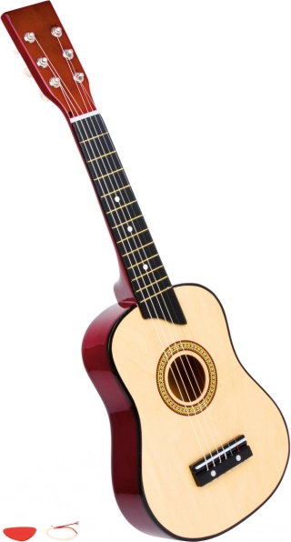 See naturaalne puidust kitarr on suurepärane valik väikestele muusikutele. Tänu nailonkeeltele on see puudutusele mõnus ja annab andeks laste algusvead. Saate kõik vajaliku esimesteks helideks – plekteri ja varukeel.