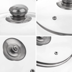 Praktiline 32 cm klaasist kaan on ideaalne asendus või täiendus kaaneta nõudele. Läbipaistev klaas koos roostevabast terasest ääre ja käepidemega on vastupidav kuni 200 °C, sobides igapäevaseks keetmiseks, hautamiseks ja praadimiseks.