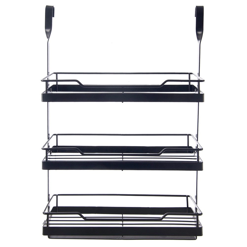 Kolm korvi kõrgendatud servadega mahutavad maitseainepurgid, toosid ja pisiesemed – kõik ülevaatlikult ja käeulatuses.