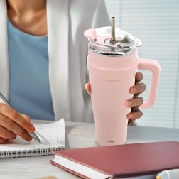 Praktiline 1,2 l reisitermo kruus pakub mugavat joomist igas olukorras. Kvaliteetne roostevaba teras elegantse roosa viimistlusega, ergonoomiline sang ja läbipaistev lukustusega kaas metallkõrre avaga tagavad turvalise ja mugava kasutuse. Vaakumisolaatsiooniga konstruktsioon hoiab joogid soovitud temperatuuril pikaks ajaks.
