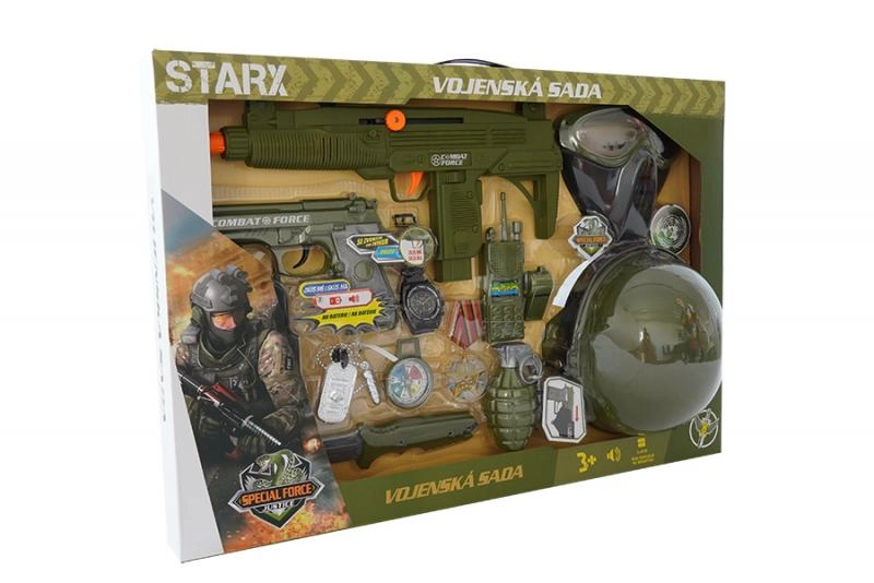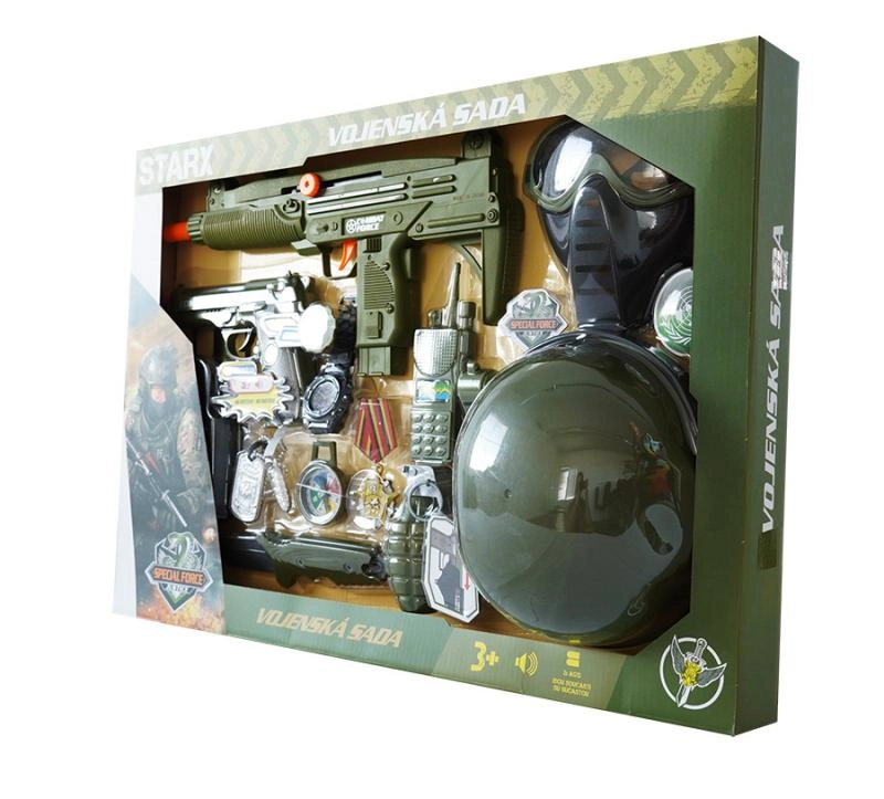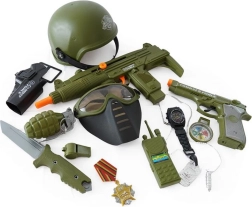 Paku lastele põnevat tegevuslikku seiklust täieliku sõjaväekomplektiga, kuhu kuuluvad kiiver, püstol ja rikkalik lisavarustus realistlikuks sõjamänguks. Komplekt arendab loovust, rollimängu ja fantaasiat ning sobib suurepäraselt väikestele avastajatele. Püstoli efektid töötavad 2× 1,5 V AG13 patareidega (ei kuulu komplekti).