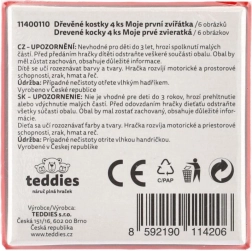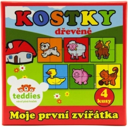 TEDDIES kaubamärgi puidust pildikuubikud Minu esimesed loomad on suurepärane valik esimesteks pusleteks. Neli kvaliteetset puidust kuubikut praktilises pappkarbis võimaldavad kokku panna kuus erinevat koduloomade motiivi. Lapsed naudivad nendega nii piltide kokkupanekut kui ka tornide, kindluste või loomade tarade ehitamist.