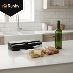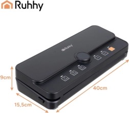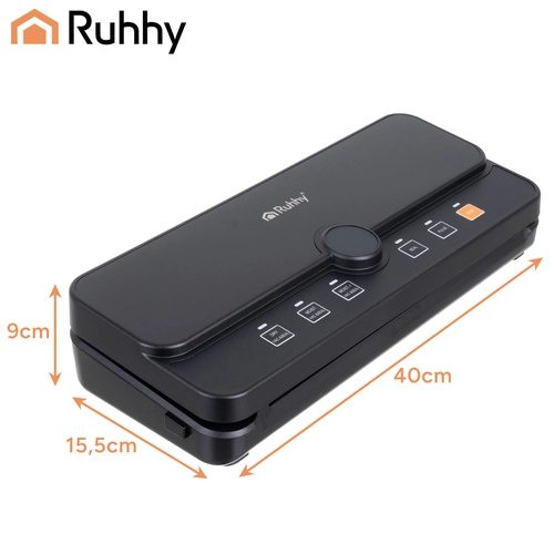 Praktiline ja töökindel RUHHY vaakumkilekeeviti sobib suurepäraselt toidu koduseks säilitamiseks ja sous-vide ettevalmistuseks. Tänu tugevale alarõhule kuni −80 kPa ja võimsale pumbale 9 l/min eemaldab õhu mõne sekundiga ja loob tugeva, ühtlase keevisõmbluse. Integreeritud rullipesa ja liuglõikur võimaldavad teha kotte suvalise pikkusega ilma käärideta, säästes aega ja ruumi.