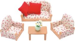 - Täielik mööblikomplekt: diivan, 2 tugitooli, laud, vaas lilledega, 2 patja