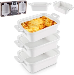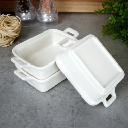 Need kompaktsed ristkülikukujulised ahjuvormid integreeritud käepidemetega on täiuslikud crème brûlée, suflee, väikeste vormiroogade, gratäänide või mini-lasanje jaoks. Kvaliteetne portselan jaotab soojust ühtlaselt ja hoiab toitu kauem soojana, nii et saate serveerida otse ahjust lauale.