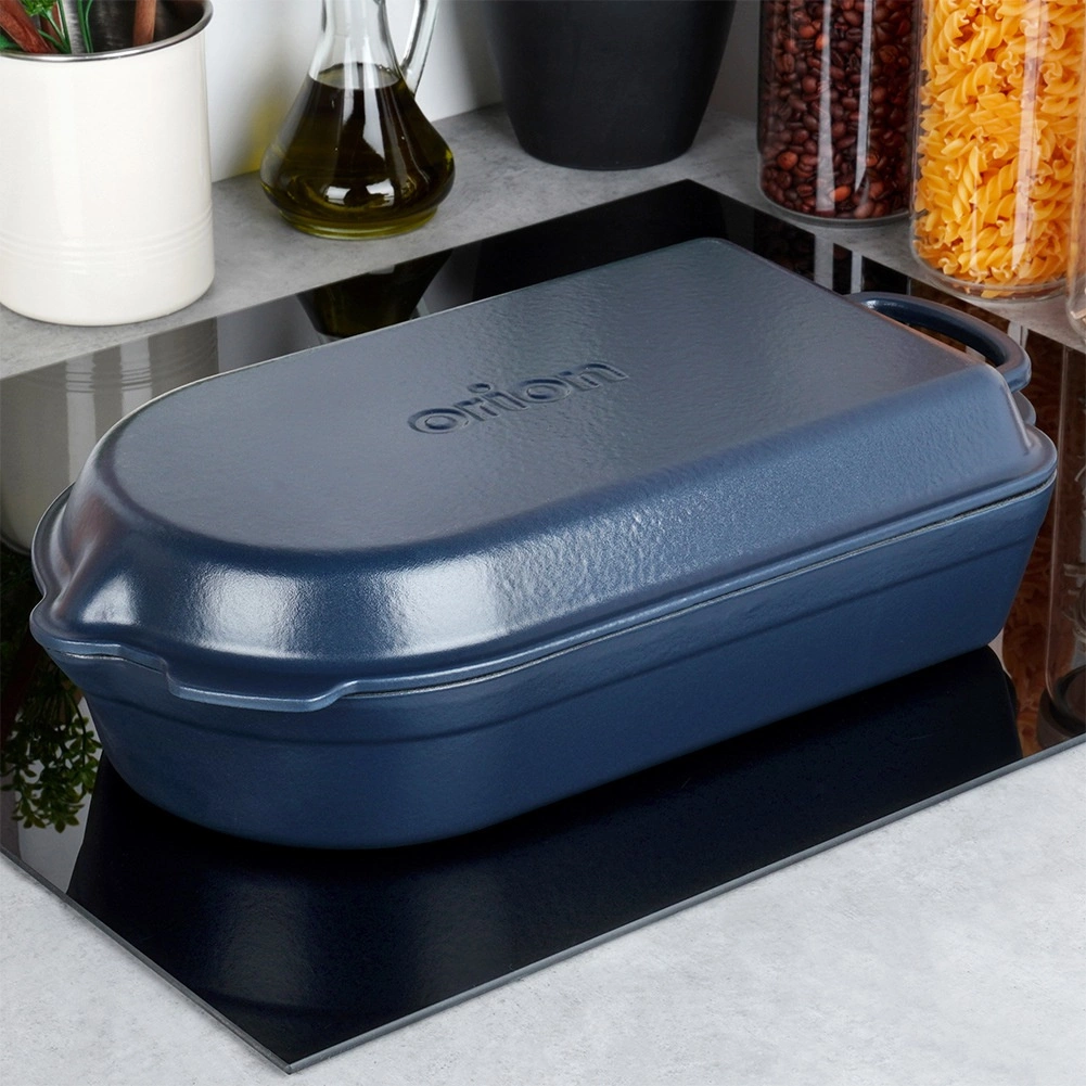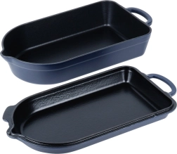 Sisemine must email lihtsustab praadimist, gratineerimist ja hooldust, väline tumesinine glasuur lisab elegantsi serveerimiseks otse lauale. Nõu sobib gaasi-, elektri-, klaaskeraamilistele, halogeeni- ja induktsioonpliitidele ning ahju kuni 250 °C. Mõlemal osal on praktilised valanokad lihtsaks vedeliku kallamiseks ja ohutud käepidemed mugavaks tõstmiseks.