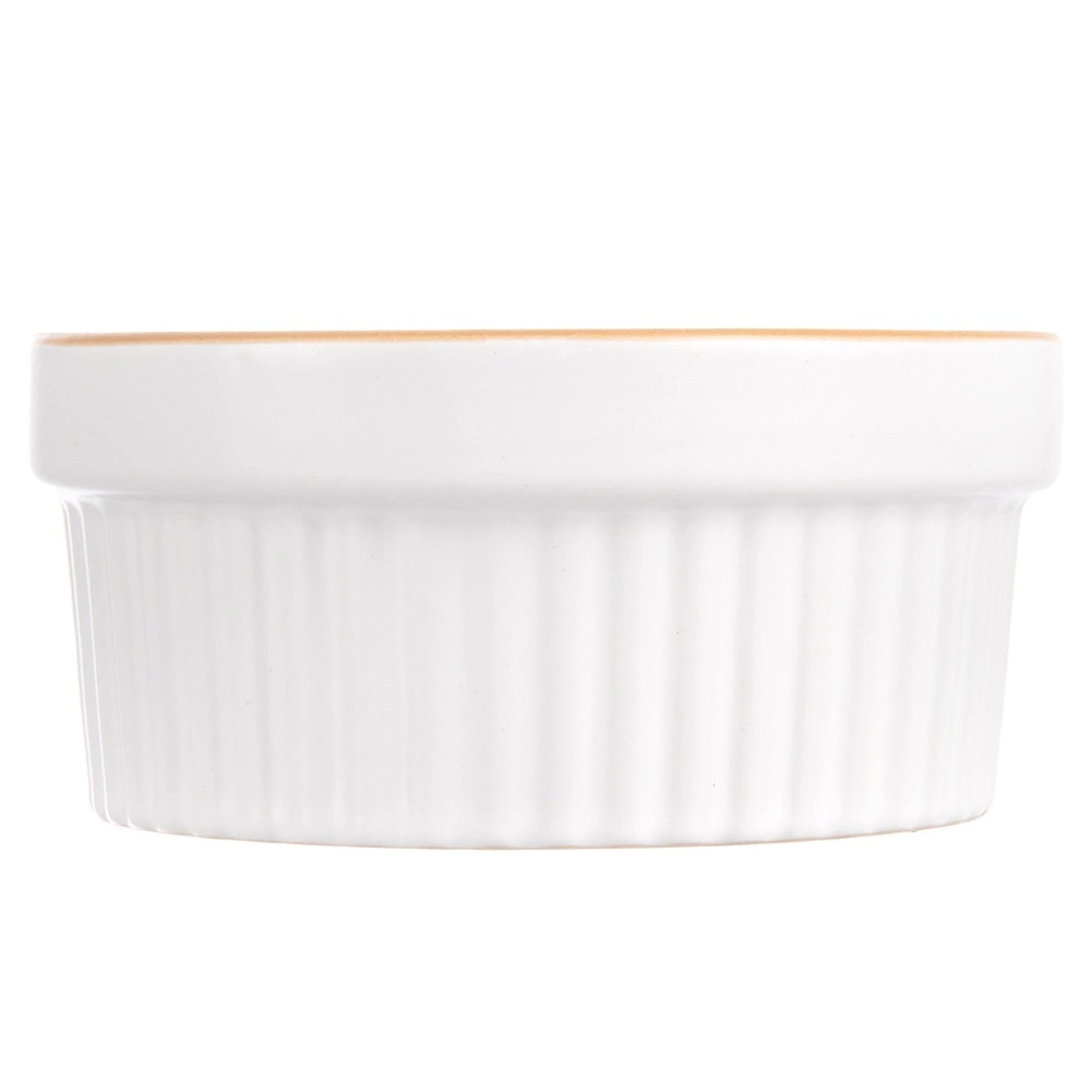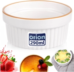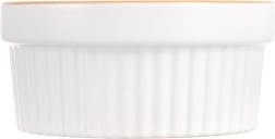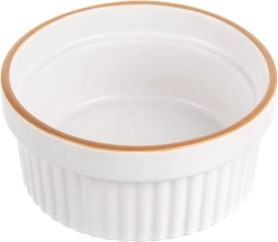 Praktiline keraamiline ahjus küpsetamise kauss mahuga 290 ml ja läbimõõduga 11,5 cm on ideaalne crème brûlée’, suflee, mini vormitoitude ja magustoitude jaoks. Vastupidav valge glasuuriga keraamika ja pruuni servaga tagab ühtlase küpsemise ja elegantse serveerimise. Sobib ahju (kuni 200 °C), mikrolaineahju ja nõudepesumasinasse.