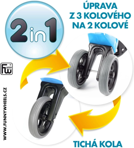 Väga kerge tasakaaluratas FUNNY WHEELS Rider Sport 2-ühes kasvab koos lapsega: hetkega saad muuta selle kolmerattalisest kaherattaliseks ja seadistada kaks sadula kõrgust. Vaiksed libisemiskindlad rehvid, ohutud lenksuotsad ja vastupidav, tervisele ohutu plast tagavad mugavuse ja turvalisuse juba alates 18. elukuust. Valmistatud Tšehhi Vabariigis.