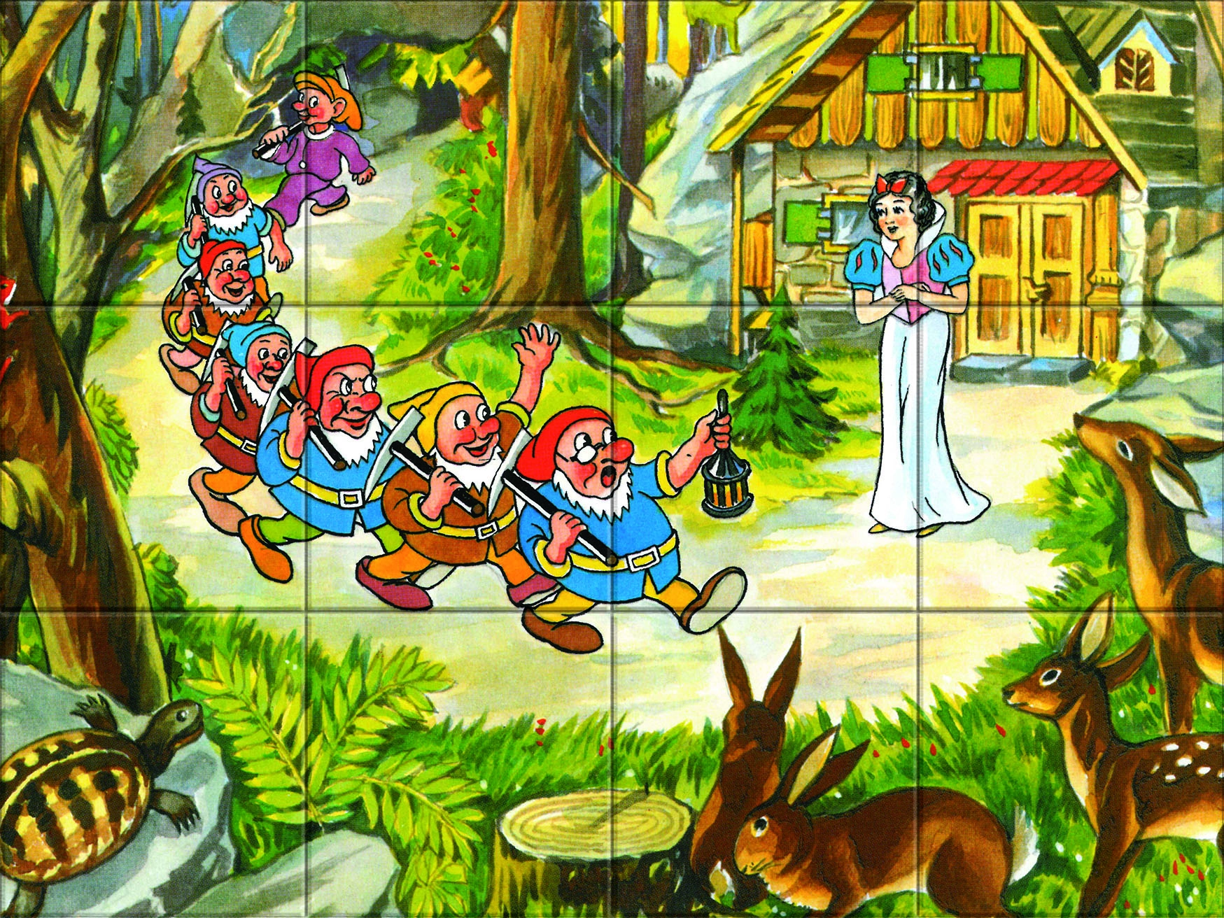 Selle ajatu mänguasjaga tutvuvad lapsed mängulisel viisil Lumivalgekese looga. Puidust klotsid on vastupidavad, meeldivad puudutusele ning trükitud pind võimaldab moodustada mitu erinevat pilti. Suurepärane silma-käe koordinatsiooni, kannatlikkuse ja loogilise mõtlemise arendamiseks.