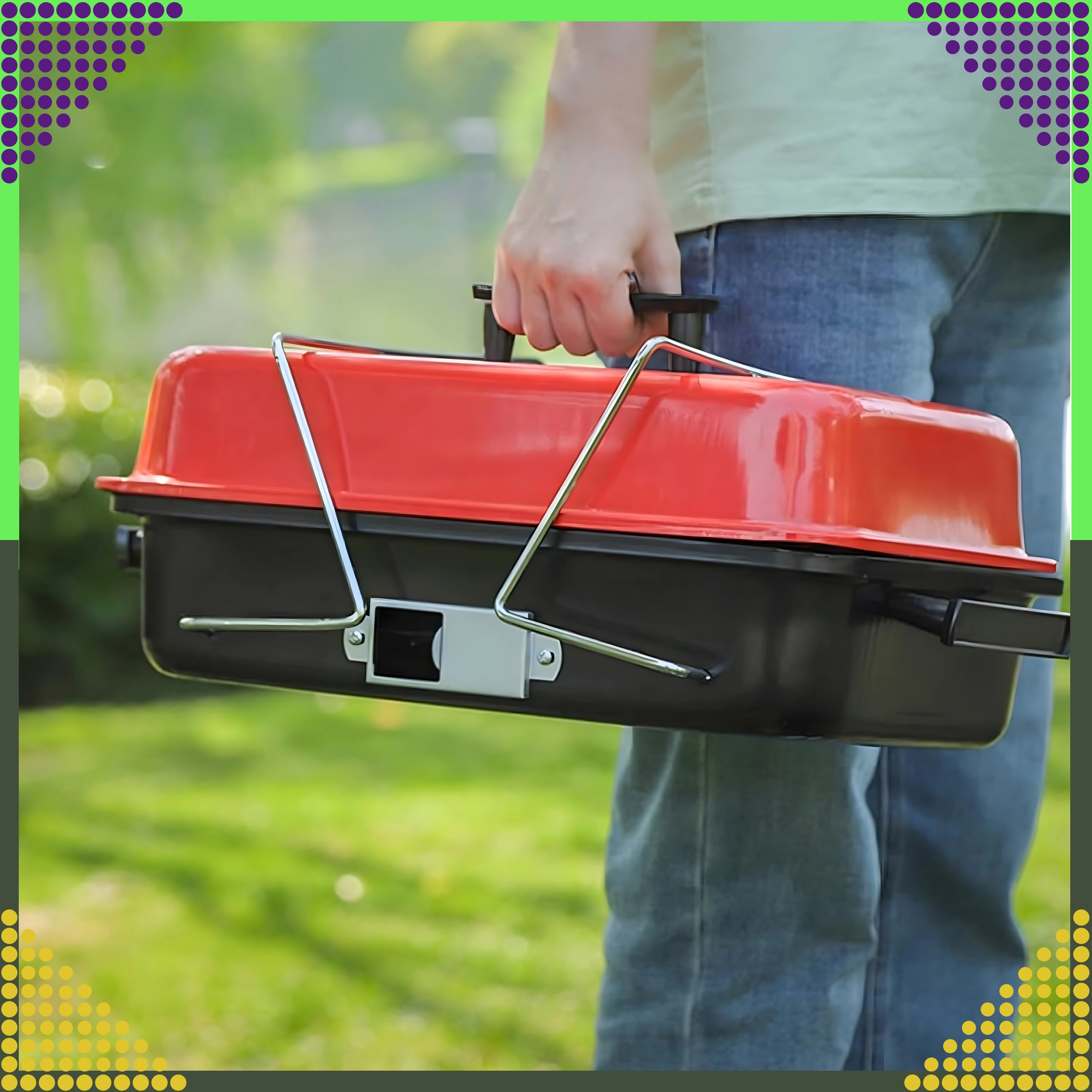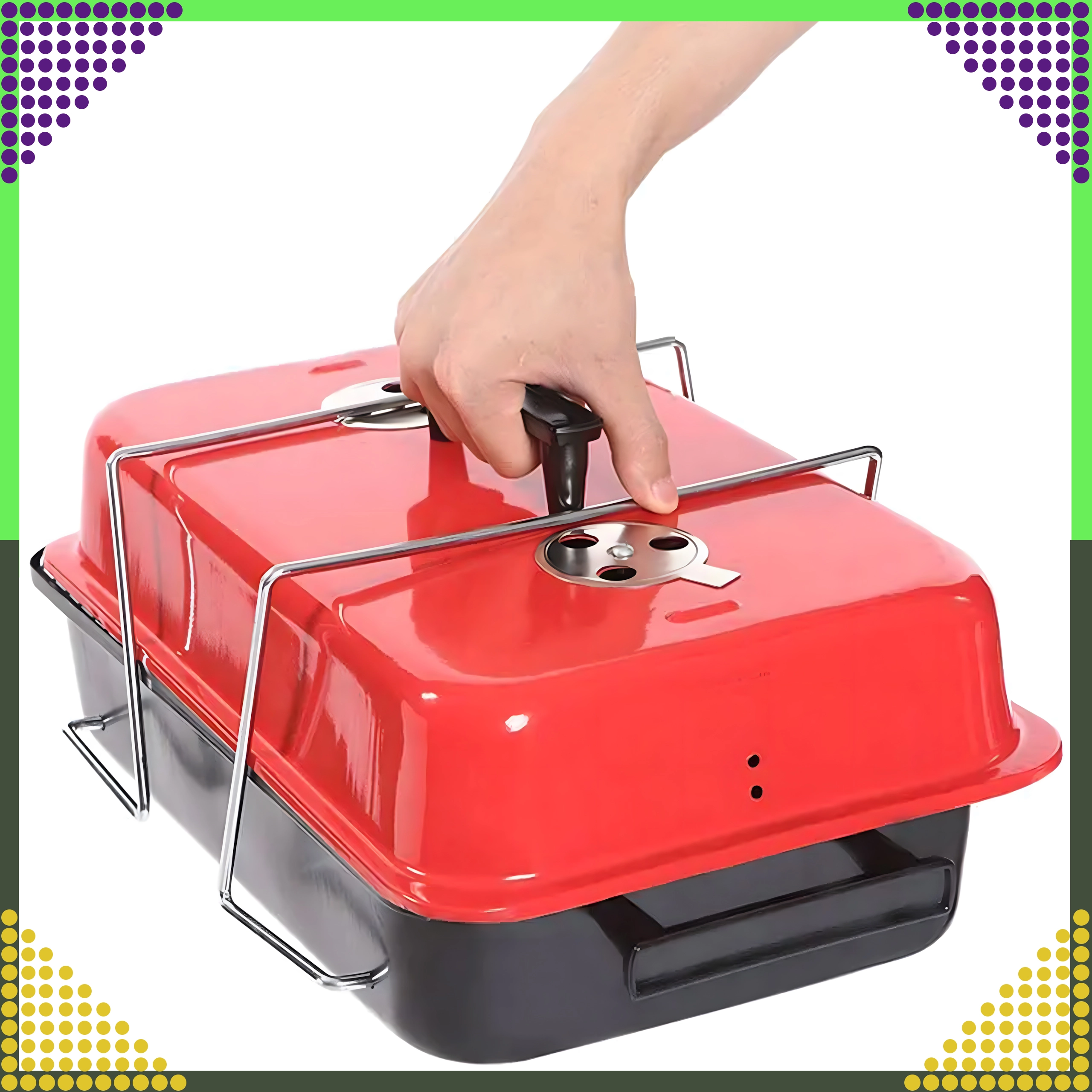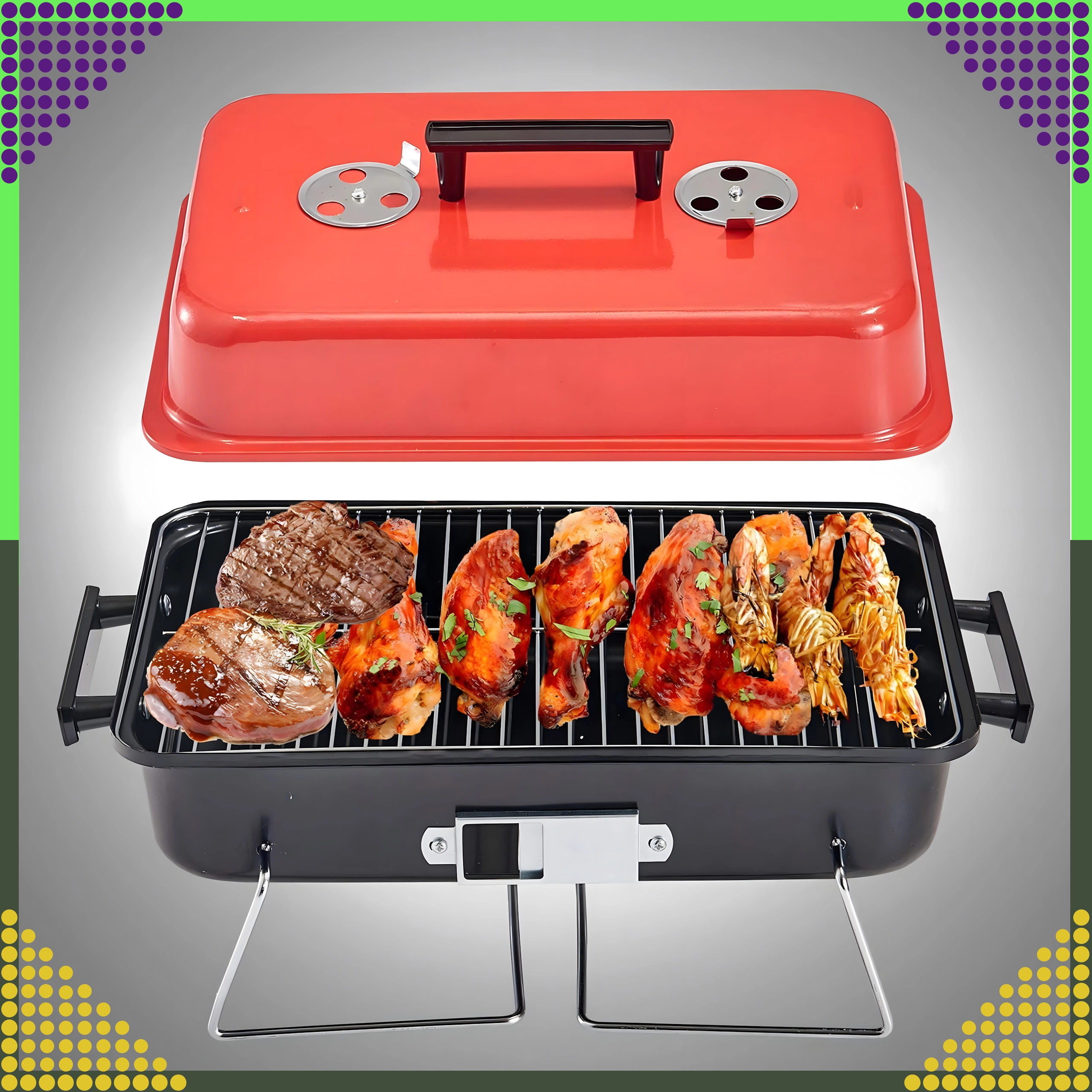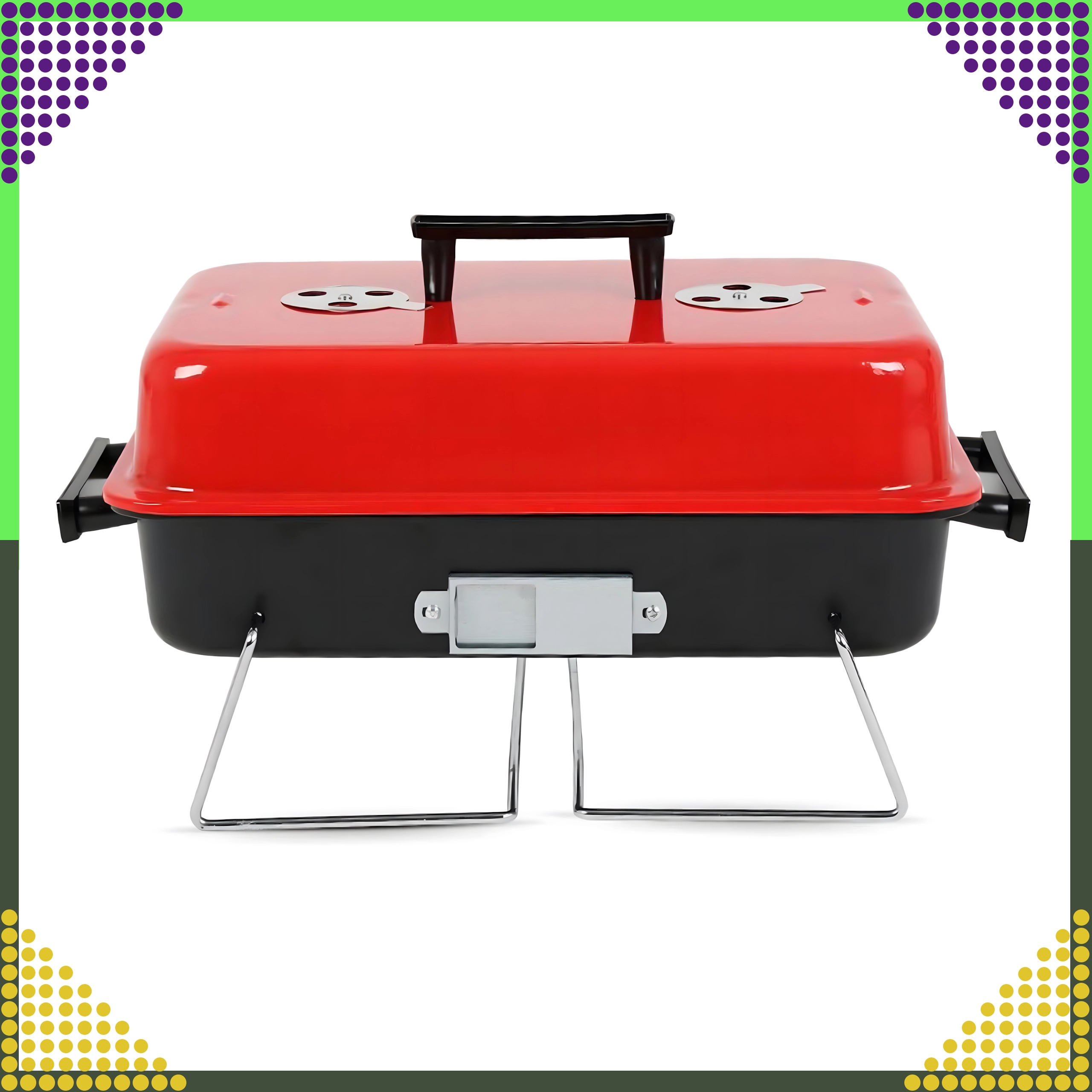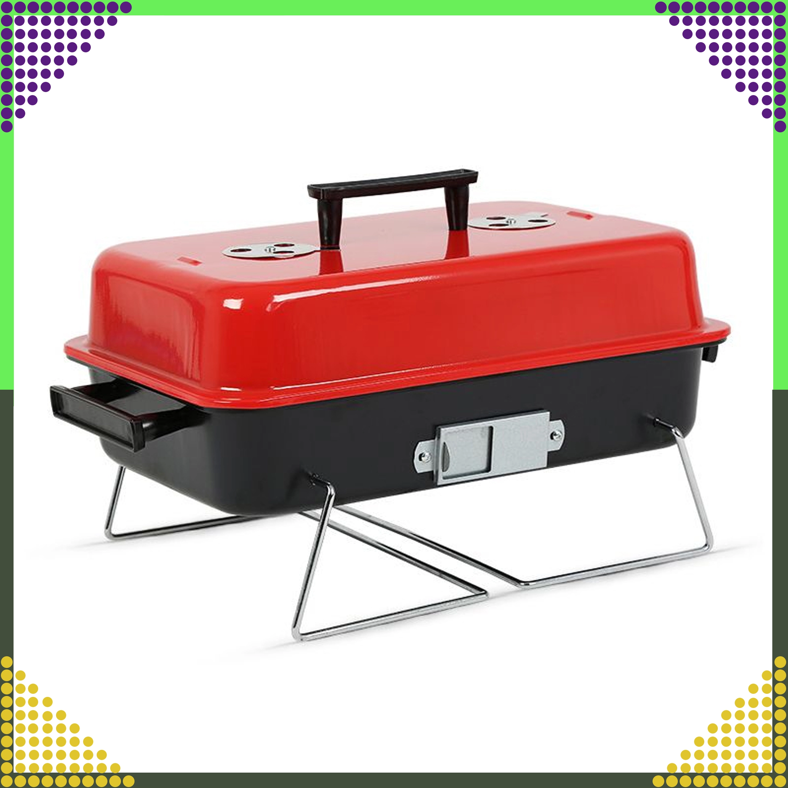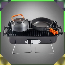 Tänu kokkupandavatele jalgadele, mis kokkupanduna lukustavad kaane, on transport ohutu ja puhas. Kroomitud rest on hõlpsasti puhastatav ja pakub stabiilset pinda grillimiseks kuni umbes 1 kg toitu korraga. Kompaktsed mõõtmed musta-punase värvilahendusega sobituvad suurepäraselt välivarustusega.