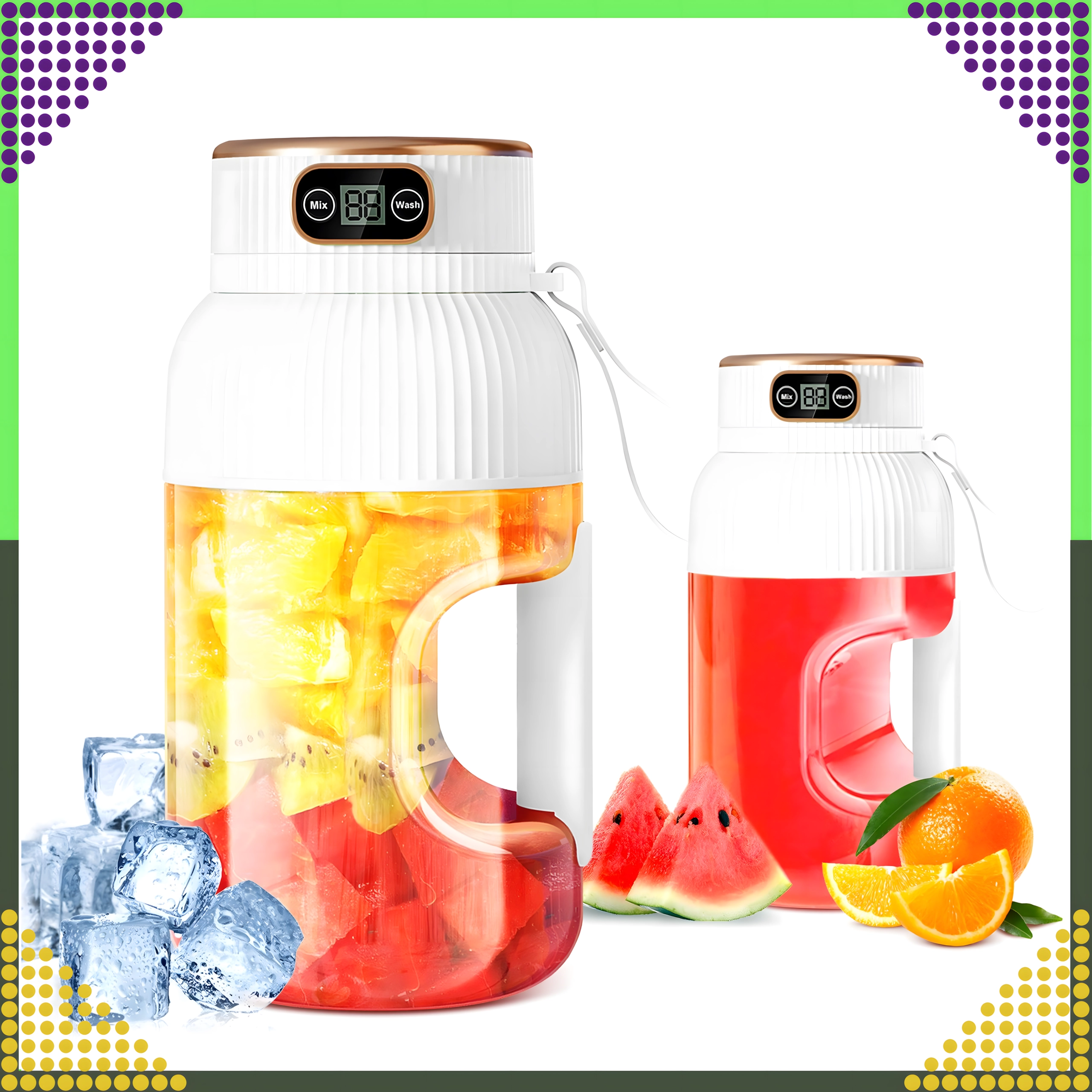 Praktiline kaasaskantav mikser suure 1 l mahutavusega, 10 roostevabast terasest teraga eriti peenete smuutide ja mahlade jaoks, digitaalekraaniga ja USB-laadimisega. Ideaalne tööle, koju ja reisile – sega ja joo otse samast anumast.