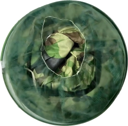 Lai nokk hoiab võrgu näost eemal ning kamuflaažmuster sobib kalastajatele, jahimeestele ja õuetegevuste harrastajatele.