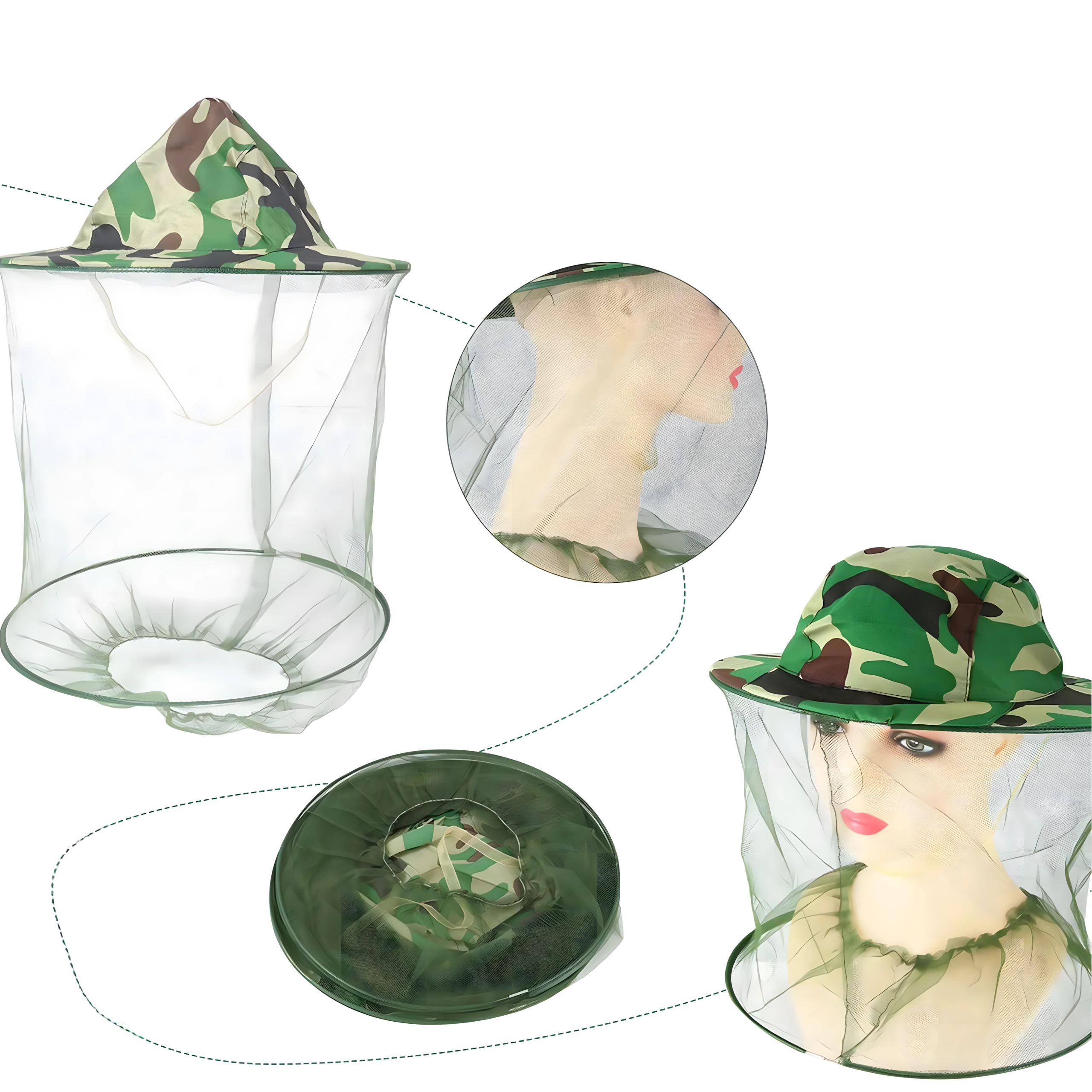 Kerge ja hingav kamuflaažmustriga sääsevõrguga müts pakub usaldusväärset kaitset sääskede, mesilaste ja muu putuka eest. Lai nokk hoiab võrgu näost eemal ning elastne äär kaela all tagab tiheda sulgumise. Ideaalne kalale, metsa, aeda ja matkamiseks.