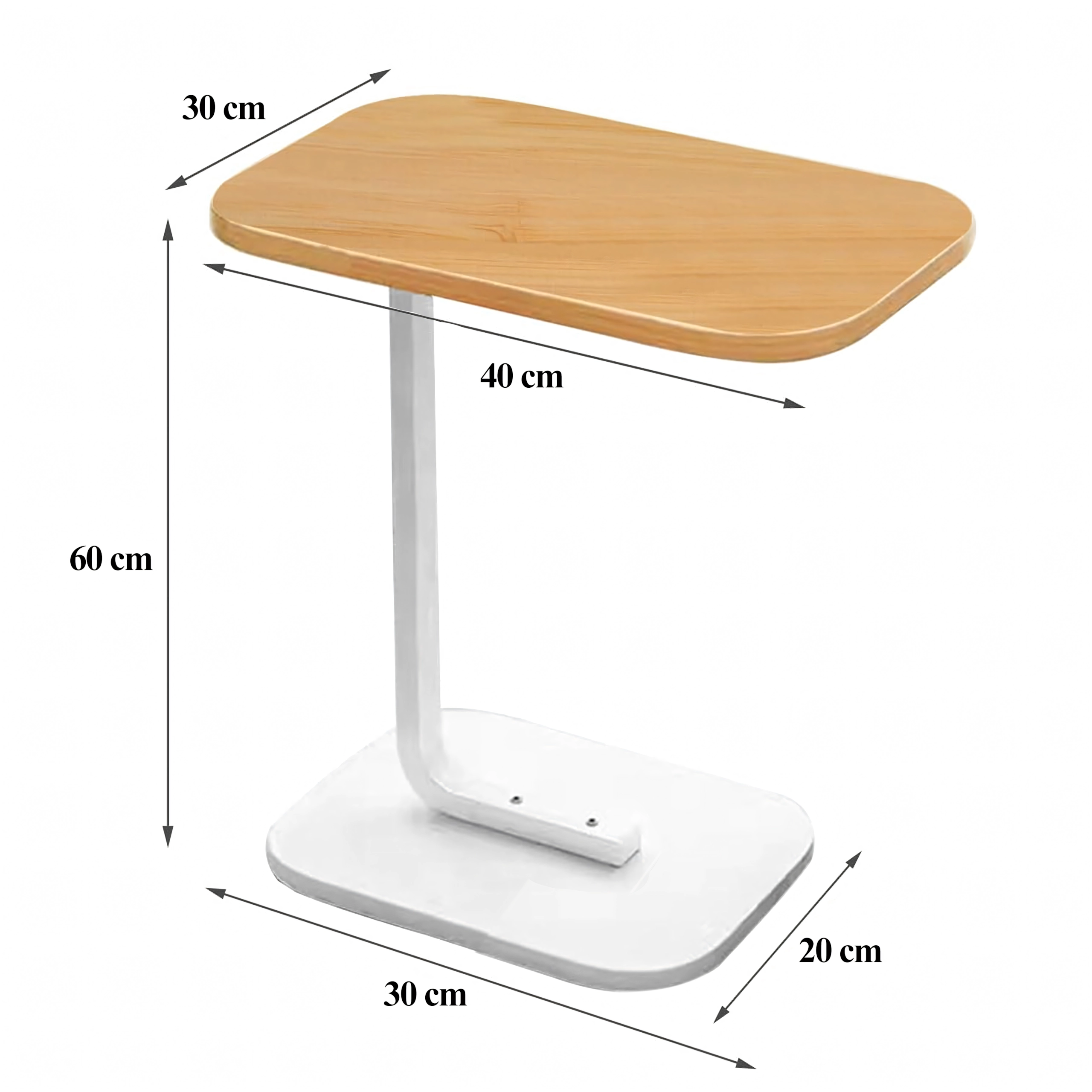 Moodne C-kujuline abilauake sobib suurepäraselt elutuppa, magamistuppa ja kabinetti. Tänu nutikale konstruktsioonile libistad selle hõlpsasti diivani või tugitooli alla ning saad mugava asetuspinna kohvi, raamatu, sülearvuti ja dekoratsioonide jaoks. Kerge, stiilne ja funktsionaalne lisand igasse kaasaegsesse koju.
