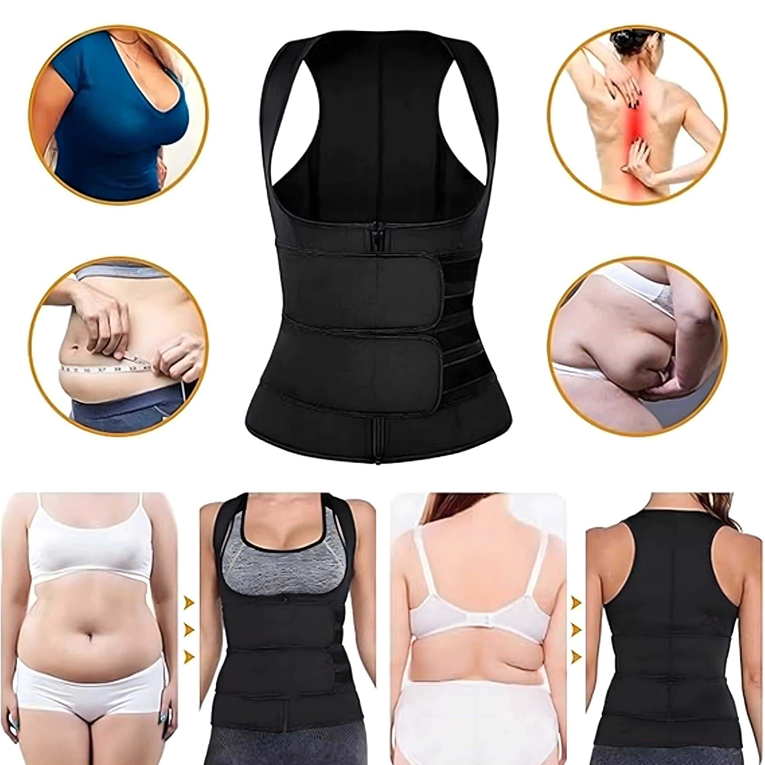 Kiirenda oma treeningtulemusi selle naiste neopreenvestiga, mis tõstab kehatemperatuuri, soodustab higistamist ja aitab kaloreid tõhusamalt põletada. See annab ka kerge keskkoha toestuse ja seljatoe parema rühi jaoks, samas kui elastne materjal tagab mugava ja kindla vöökoha kompressiooni nii treeningul kui ka igapäevasel kandmisel.