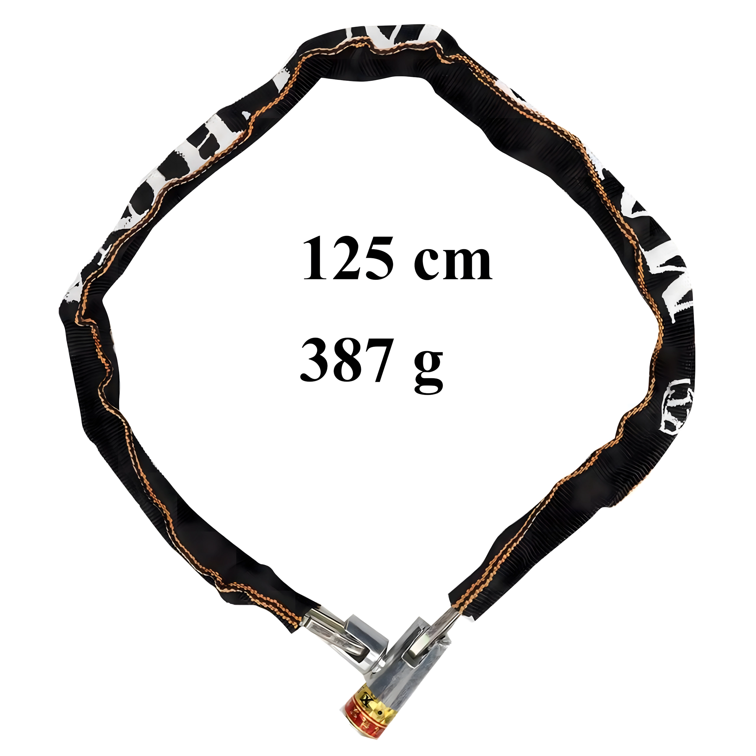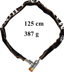 Vastupidav 125 cm pikkune terasketilukk võtmega lukuga ja 2 võtmega komplektis. Kaitsev nailonist ümbris hoiab laki kriimustuste eest. Ideaalne jalgratastele, mootorratastele, tõuksidele, tõukeratastele ja väravatele – usaldusväärne kaitse igapäevaseks kasutuseks.
