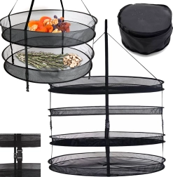 Praktiline riputatav kuivati 60 cm läbimõõdu ja nelja tasandiga pakub seente, ürtide, puuviljade, köögiviljade ja kala tõhusat ja õrna kuivatamist. Tänu hingavale võrkkangale ja vertikaalsele disainile ringleb õhk ühtlaselt ning toit säilitab rohkem väärtuslikke toitaineid. Konstruktsioon on kokkupandav, kerge ja hõlpsasti kaasaskantav – ideaalne korterisse, rõdule või töötuppa.