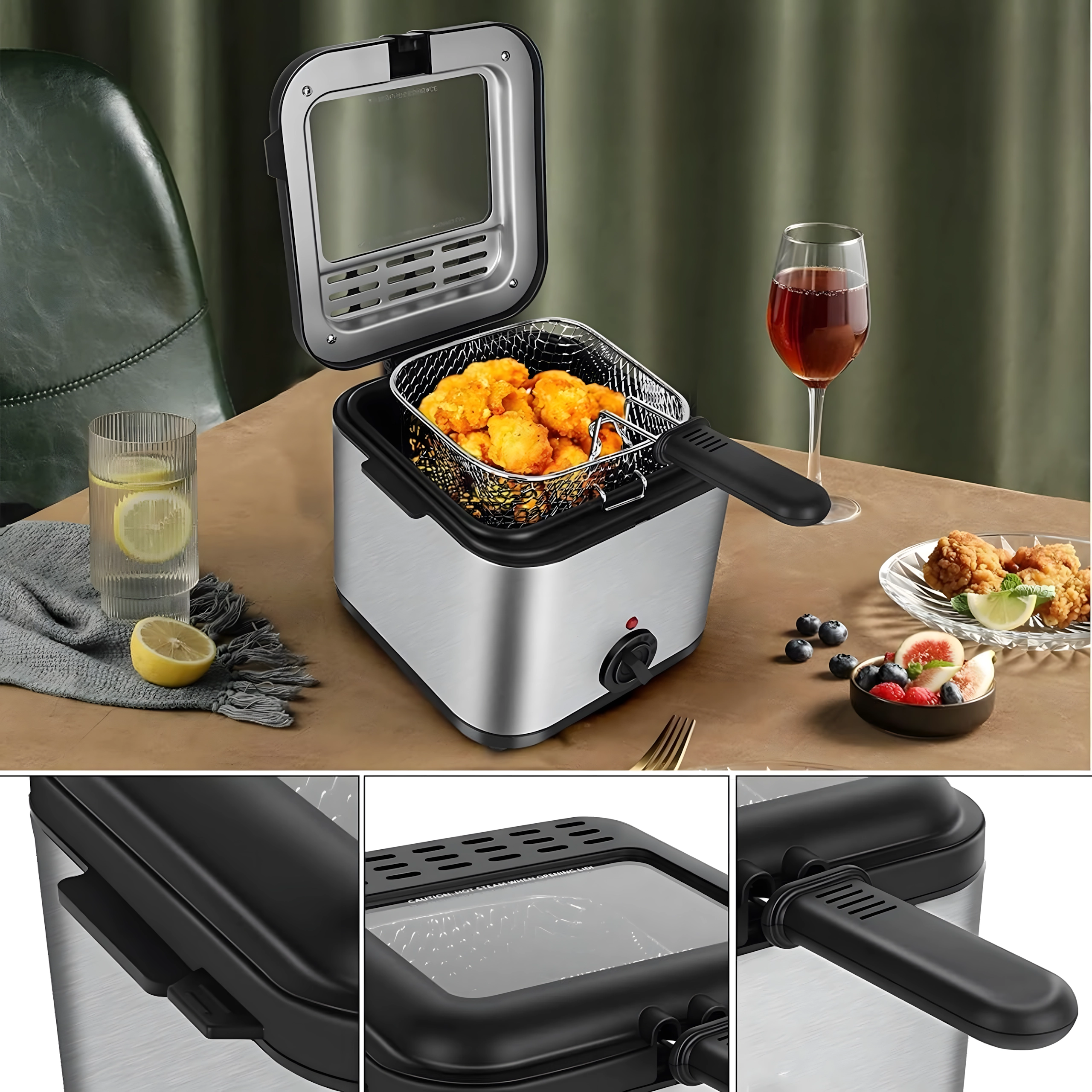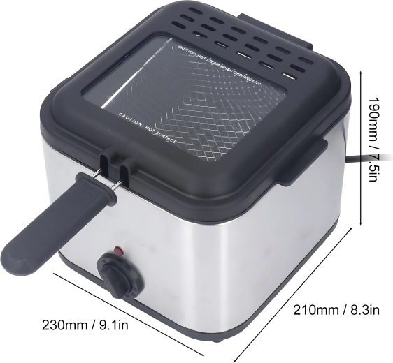 Praktiline aken kaanes võimaldab jälgida protsessi ilma liigse avamiseta, mis aitab hoida õli temperatuuri stabiilsena. 1000 W võimsus tagab tõhusa kuumenemise ja ühtlased tulemused. Eemaldatav korv käepidemega lihtsustab käsitsemist ja õli ohutut nõrutamist.