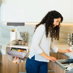 Praktiline allriputatav maitseainete korraldaja hoiab lemmikmaitseained alati käepärast ja vabastab samal ajal tööpinna. Tänu selgele väljatõmmatavale konstruktsioonile libistad liistu purkidega hõlpsalt välja ja näed kohe, mida vajad. 3M teibiga isekleepuv paigaldus tagab kindla kinnituse ilma puurimise ja mööbli kahjustamiseta.