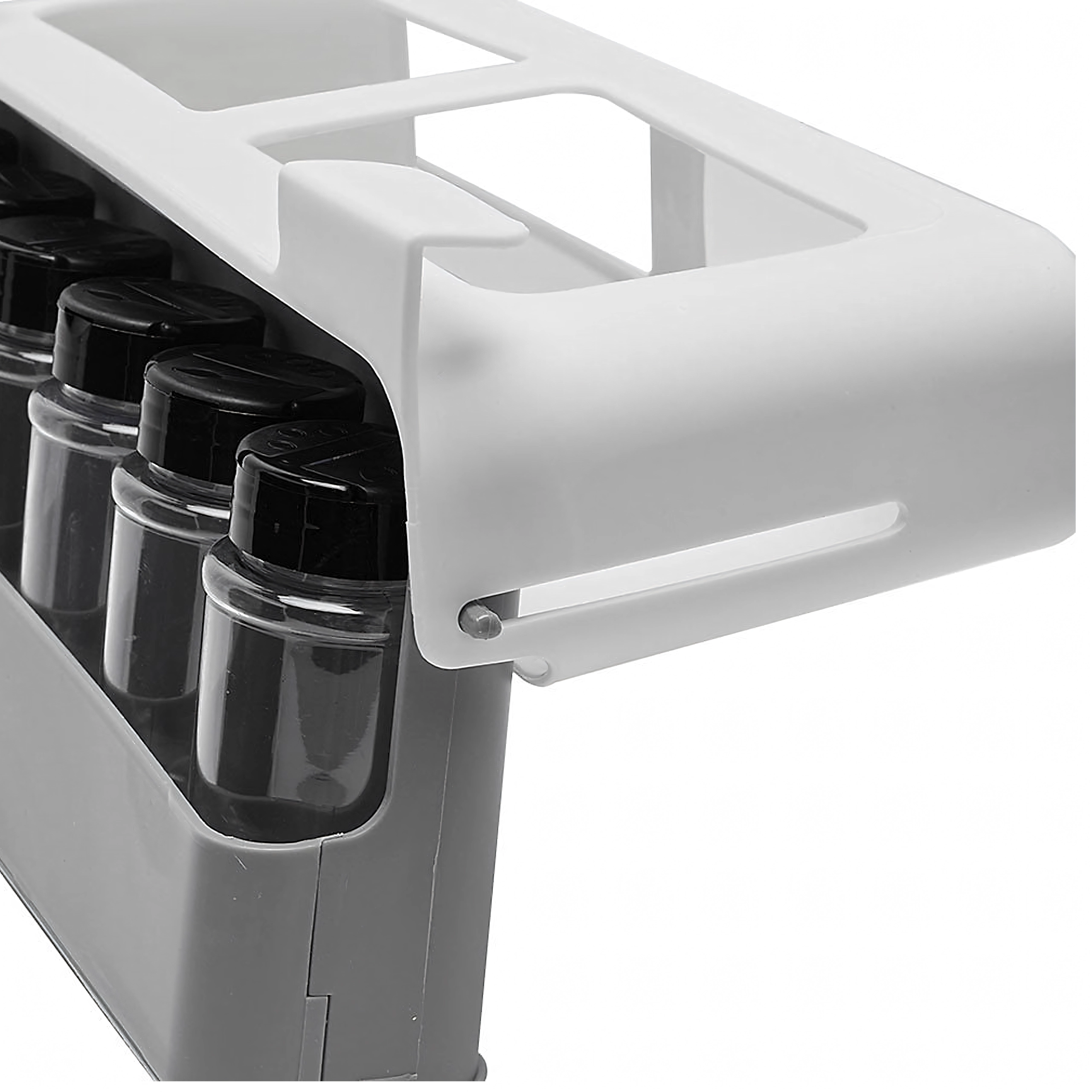 - Selgus ja kord: välja-/allaklapitav liist lihtsaks juurdepääsuks purkidele.