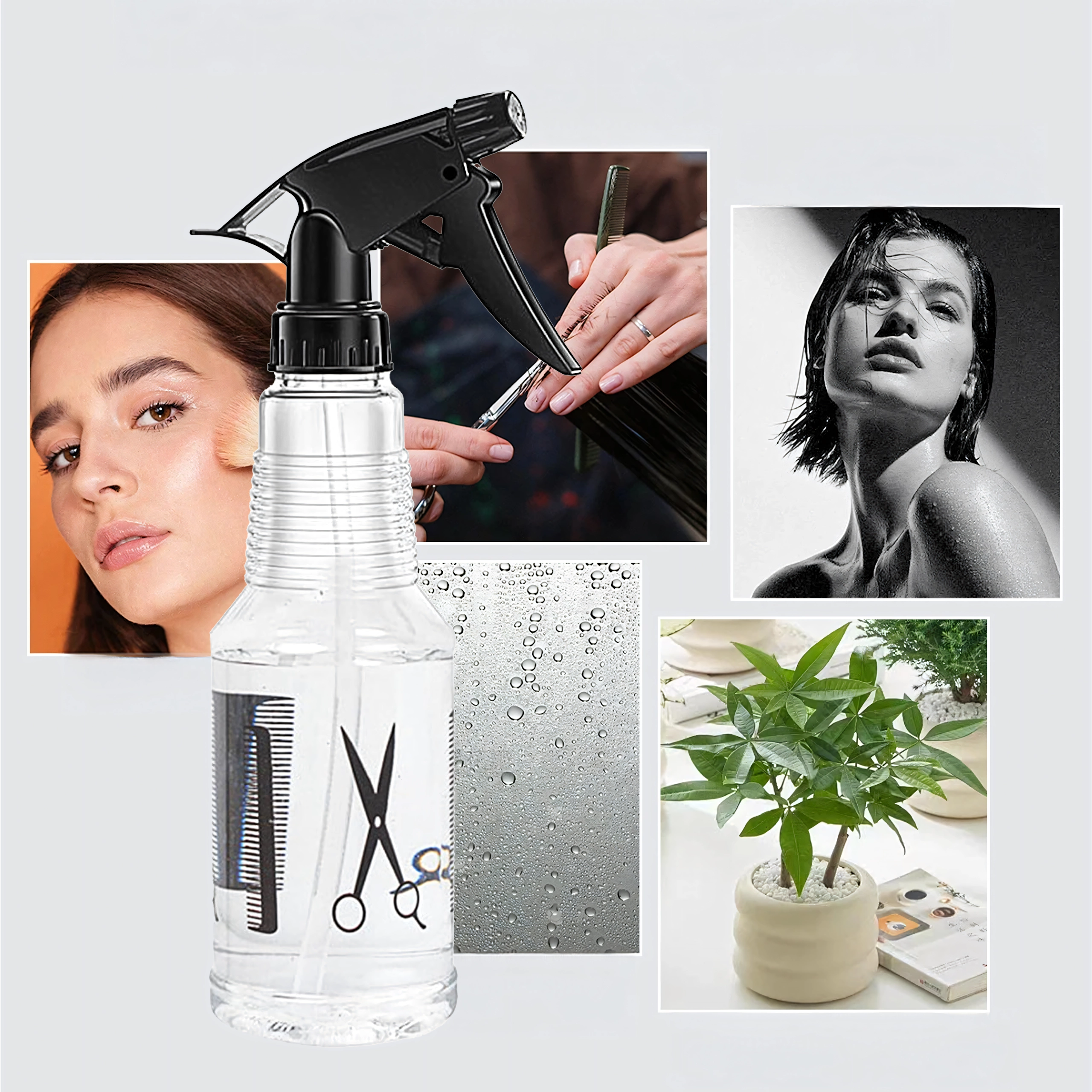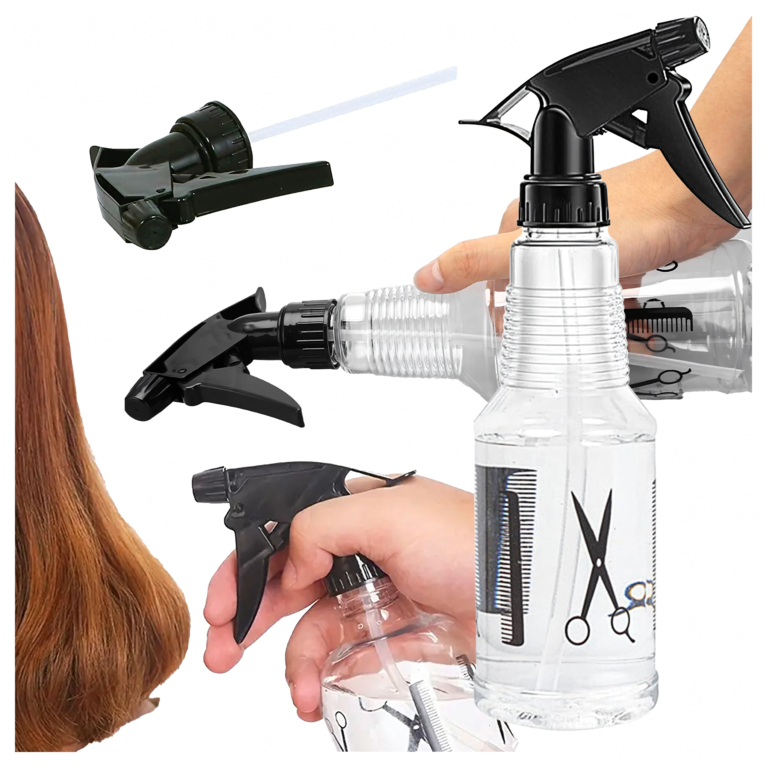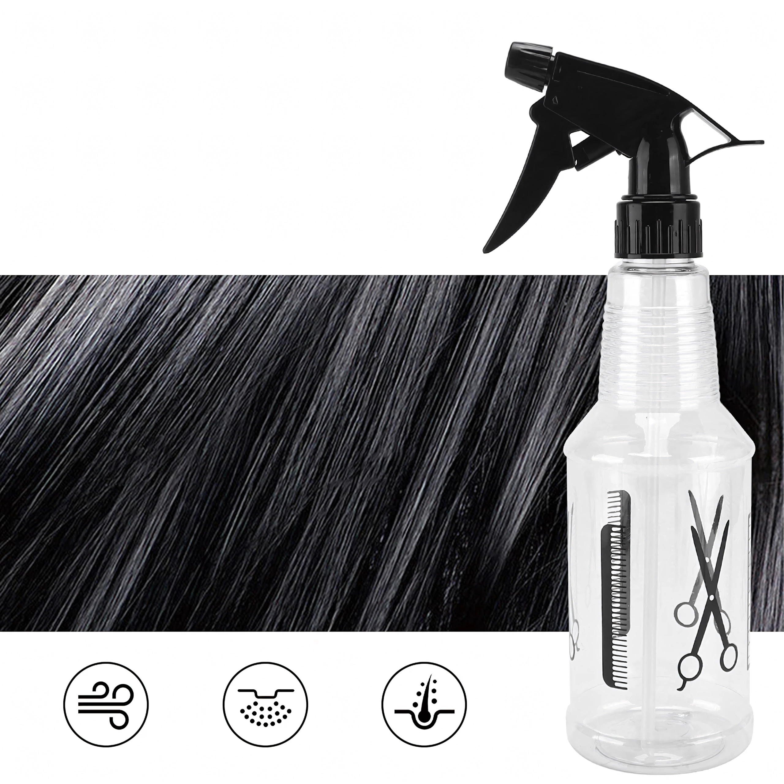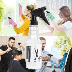 Praktiline universaalne pihusti 500 ml juuksurisalongi, aia ja kodu jaoks. Pakub reguleeritavat düüsi alates peenest udust kuni tugevama joani, läbipaistev anum lihtsaks taseme jälgimiseks ja mugav päästikmehhanism. Ideaalne juustele, taimedele ja siseruumi värskendamiseks.