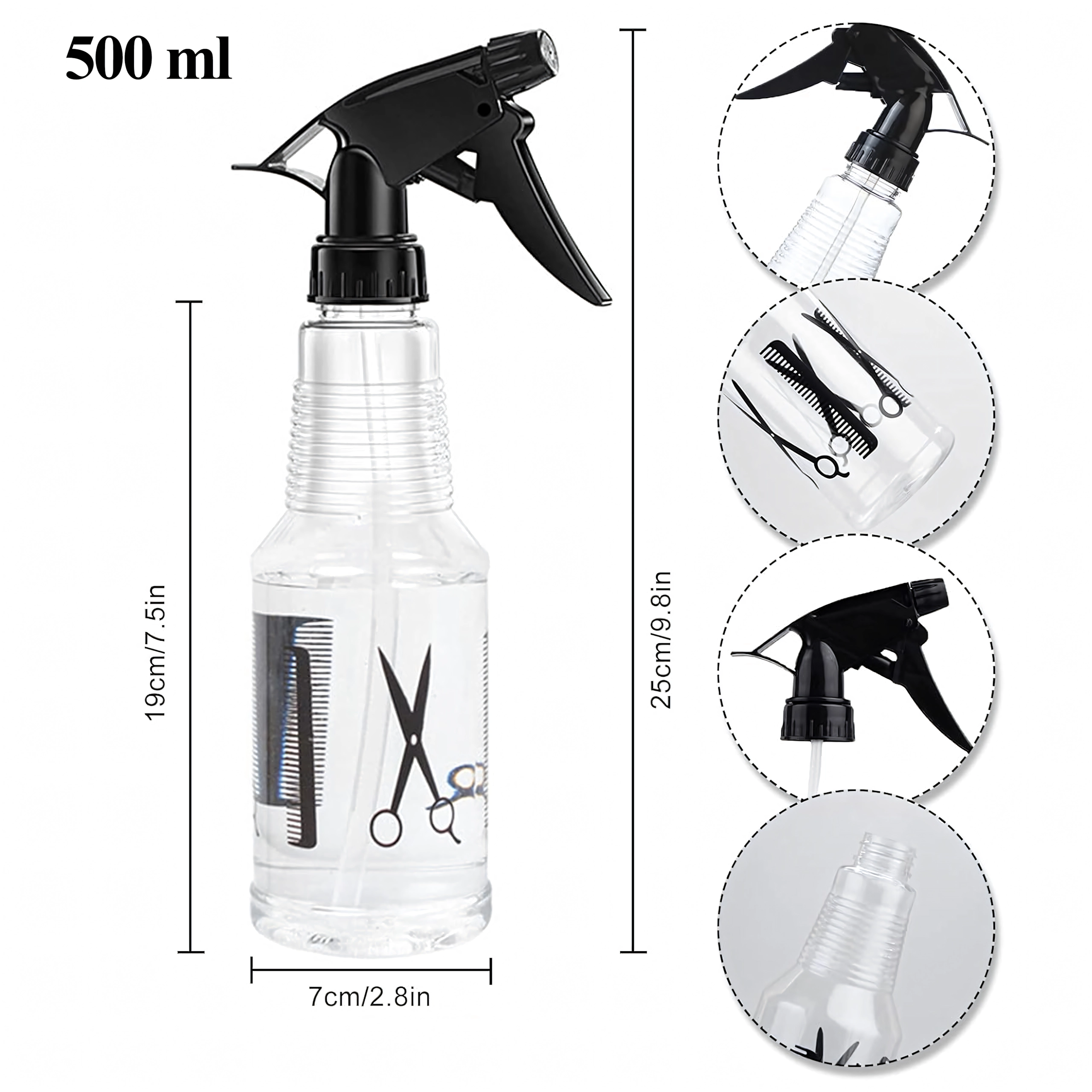 Kerge ja vastupidav 500 ml pihusti on suurepe4rane abiline igape4evaseks kasutamiseks salongis, aias ja kodus. Le4bipaistev korpus te4histusjoontega lihtsustab te4ituvuse kontrolli, samal ajal kui ergonoomiline ke4epide ja pe4e4stik tagavad mugava ja sujuva pihustamise.