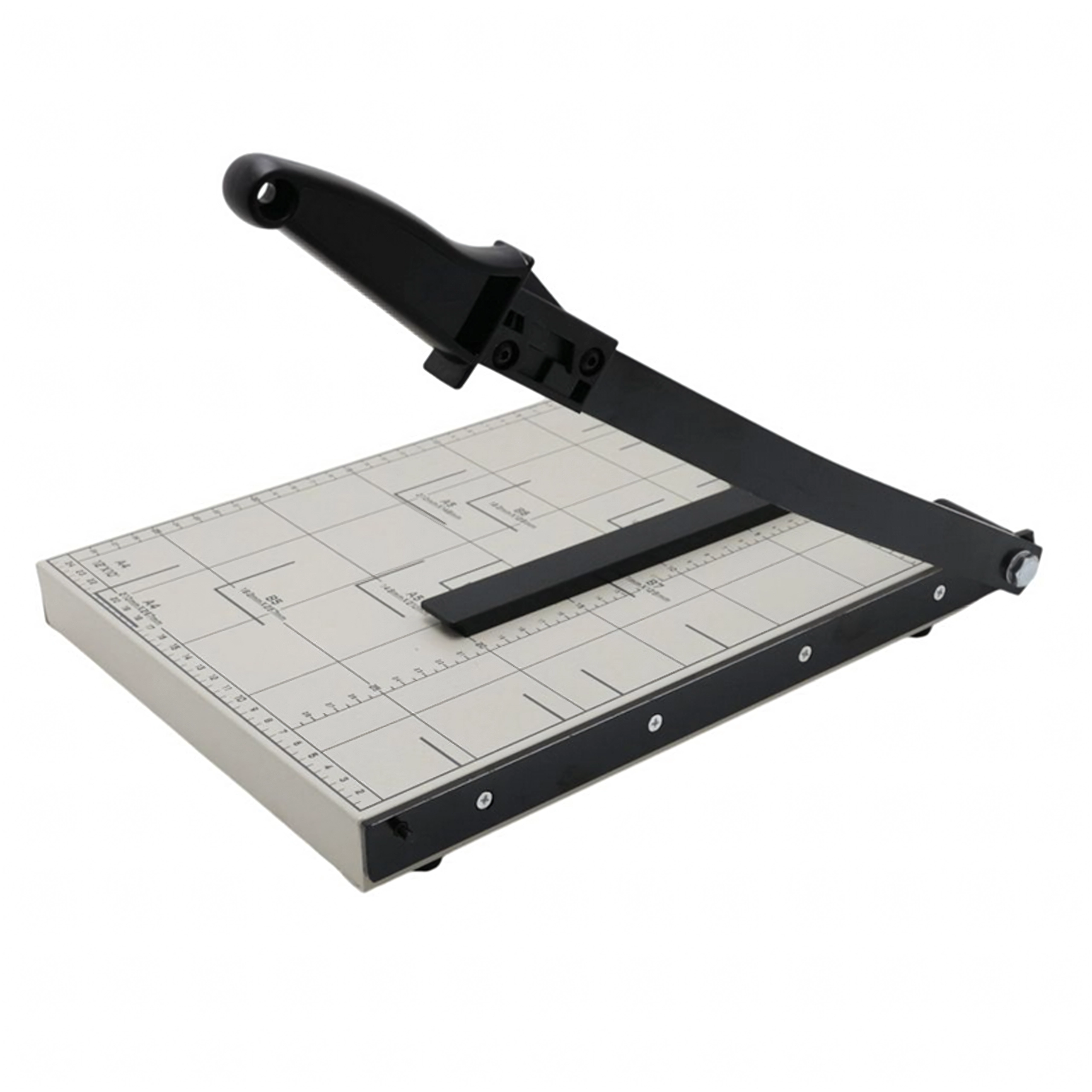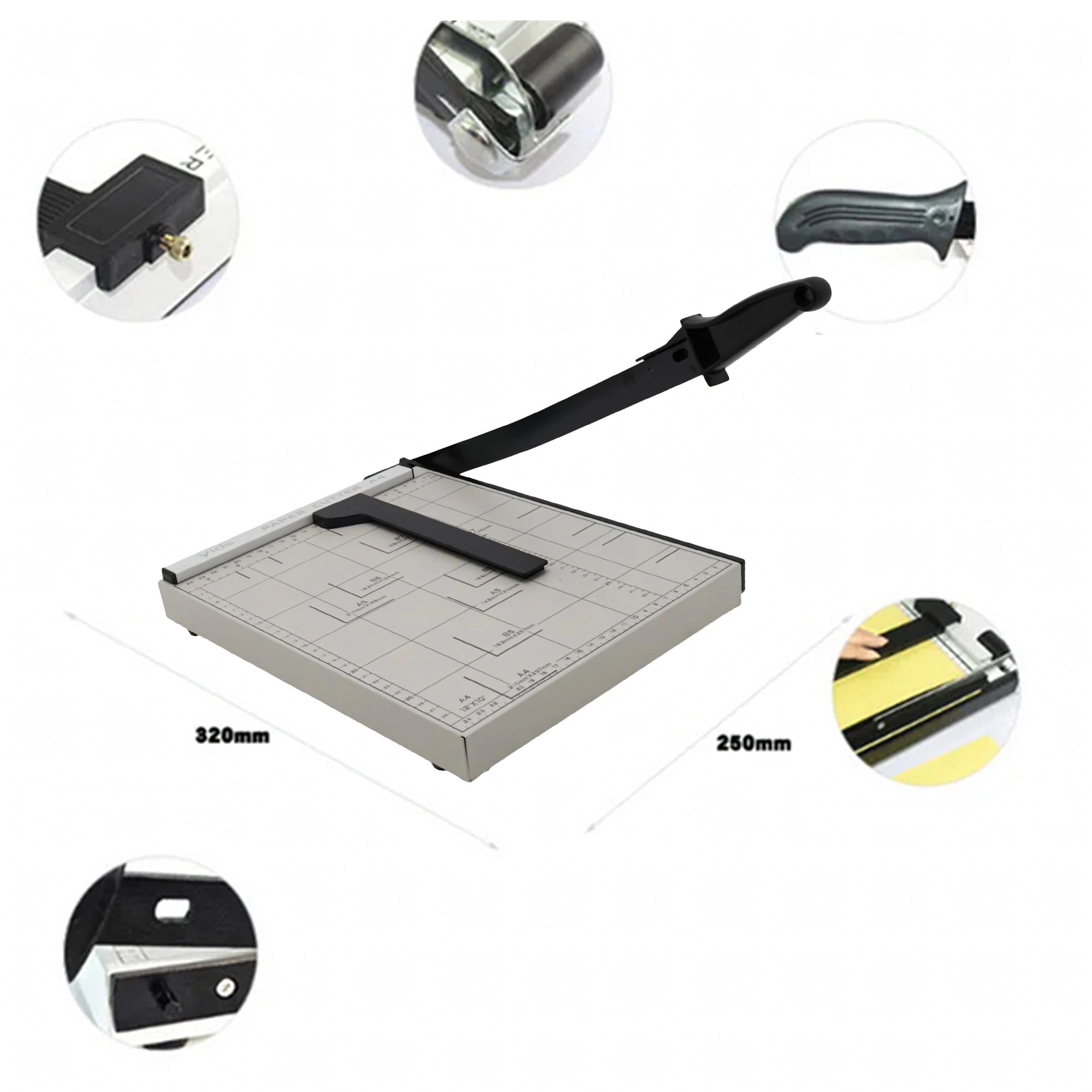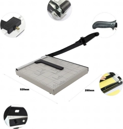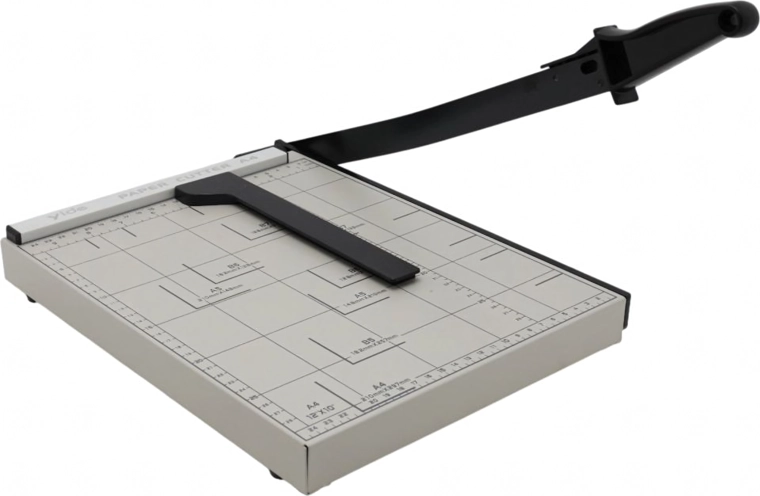 See vastupidav giljotiin võimaldab ohutuid ja sirgeid lõikeid tänu täpsele mõõtmisvõrgule ja formaatide tähistusjoontele (A4, A5, B5 jm). Tugev metallkonstruktsioon ja mugava käepidemega hoob tagavad sujuva töö ja ühtlased tulemused dokumentide, fotode või esitusmaterjalide lõikamisel.