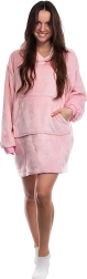 Universaalse suuruse tõttu sobib see enamikule kehadele, suur kängurutasku mahutab telefoni, puldi ja pisiasjad ning venivad soonikud hoiavad varrukad paigal. Roosa värv lisab stiili ja hubasust.