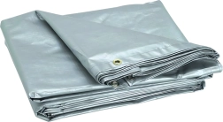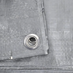 See vee- ja tuulekindel kate on ideaalne lahendus kiireks ja paindlikuks kaitseks nii välis- kui ka siseruumides. UV-stabiliseerimine pikendab materjali eluiga, samas kui ümber perimeetri paiknevad metallist öösid võimaldavad kindlat kinnitamist köite või konksudega. Hõbedane värv peegeldab hästi päikesekiiri.