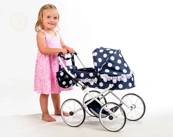 See armas retro nukukäru on suurepärane valik lastele, kes armastavad pere mänge. Musta värvi, valgete täppide ja dekoratiivse pitsi kombinatsioon mõjub stiilselt ja ajatult, rotangist korv annab kärule võluva ilme. Tänu reguleeritavale käepidemele (55 cm) sobitub käru hästi lapse pikkusega.