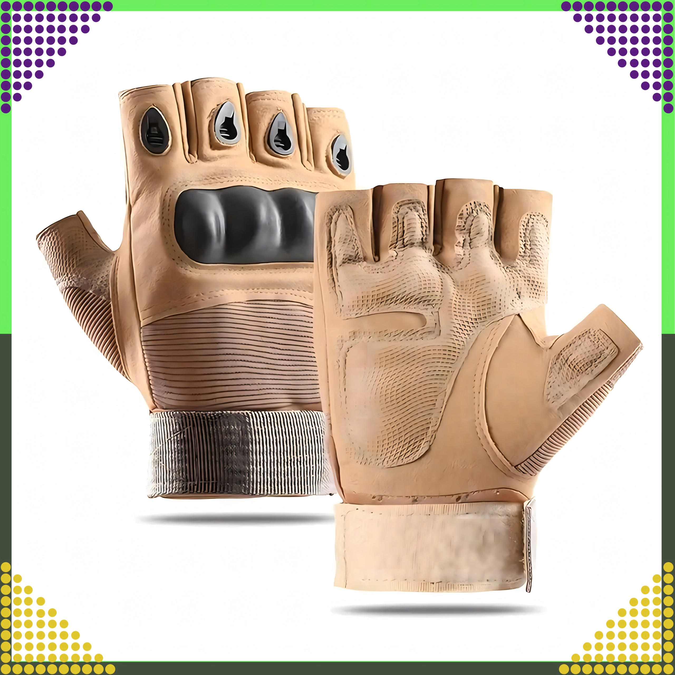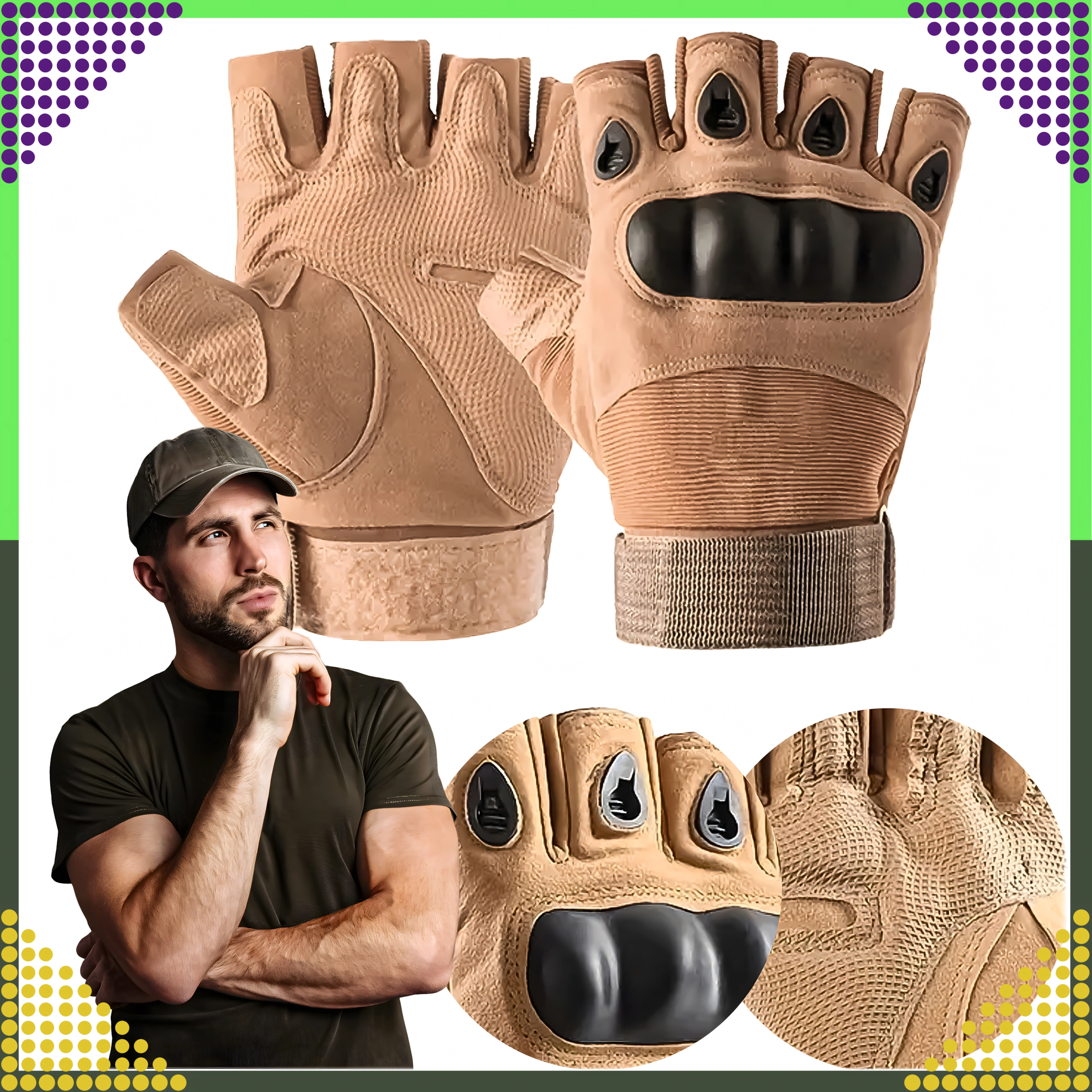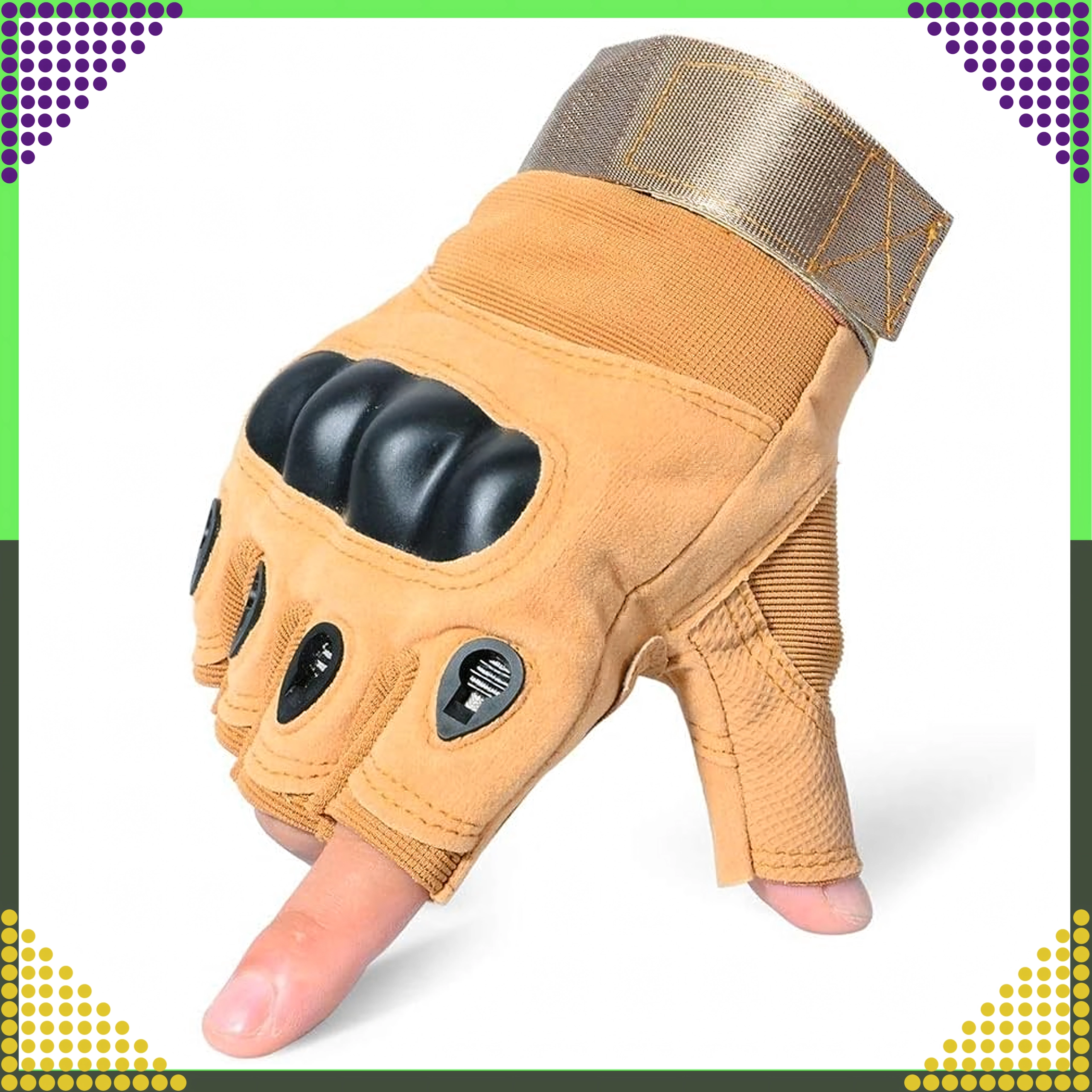 Taktikalised sõrmevabad kindad ühendavad vastupidavuse ja mugavuse nõudlikuks kasutuseks. Kõva sõrmenukkide tugevdus kaitseb löökide ja marrastuste eest, samal ajal kui polsterdatud, libisemiskindel peopesa parandab kindlustunnet tööriistade, lenkstangide või relva käsitsemisel. Avatud sõrmeotsad annavad maksimaalse tundlikkuse ja kontrolli.