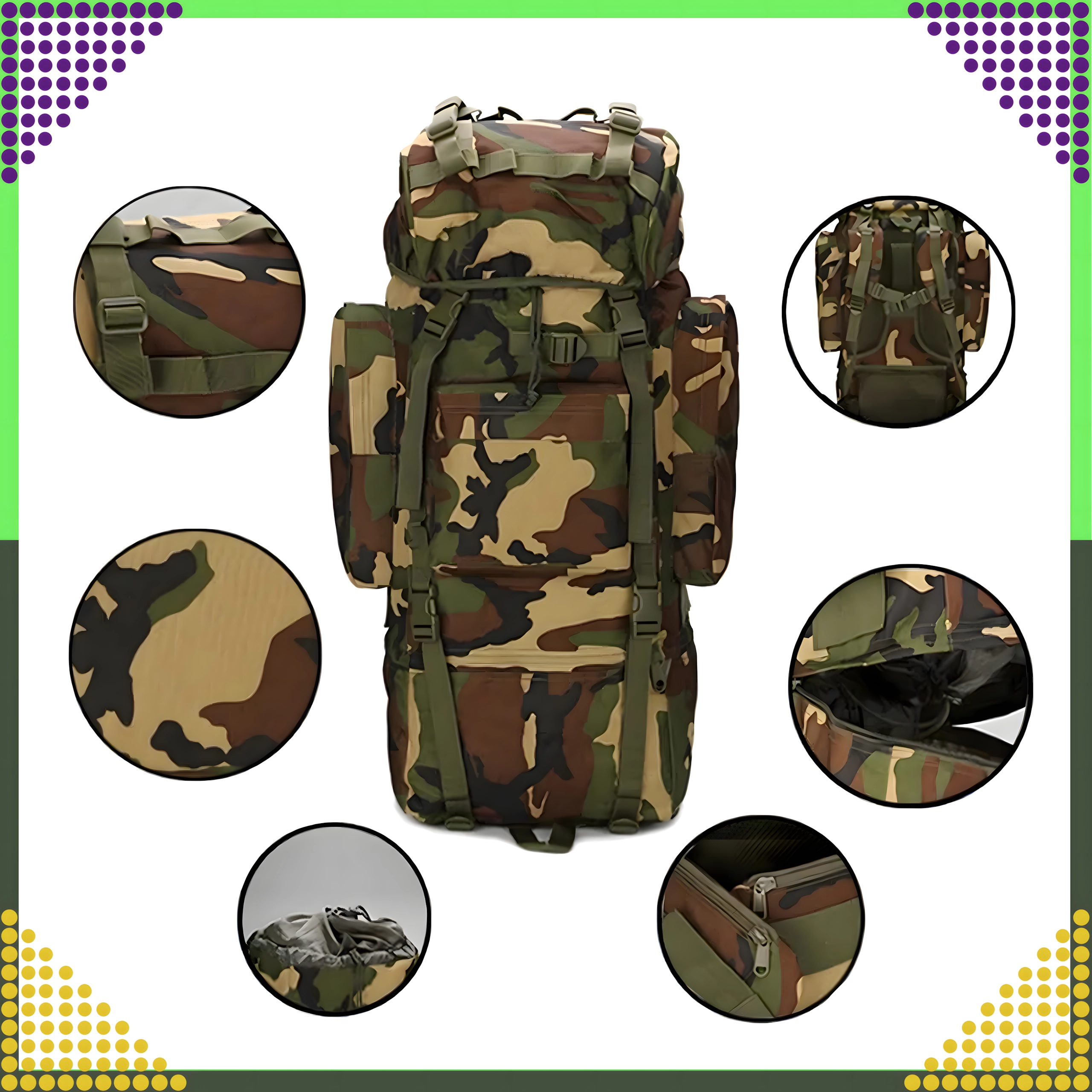 Otsid usaldusväärset seljakotti mägedesse, telkimiseks või pikemateks retkedeks loodusesse? See 65-liitrine taktikaline seljakott ühendab kõrge vastupidavuse, kandmismugavuse ja praktilise jaotuse. Põhikambrit sisetaskuga täiendavad esimesed ja külgmised lukuga taskud, nii et kõik vajalik on kiiresti käeulatuses.