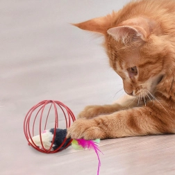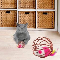 Sfääriline traadist korv veereb sujuvalt mööda põrandat, nii et kass saab mänguasja hõlpsalt jälgida, käpaga togida ja taga ajada. Avatud konstruktsioon kutsub suhtlema ja toetab loomulikku jahiinstinkti.