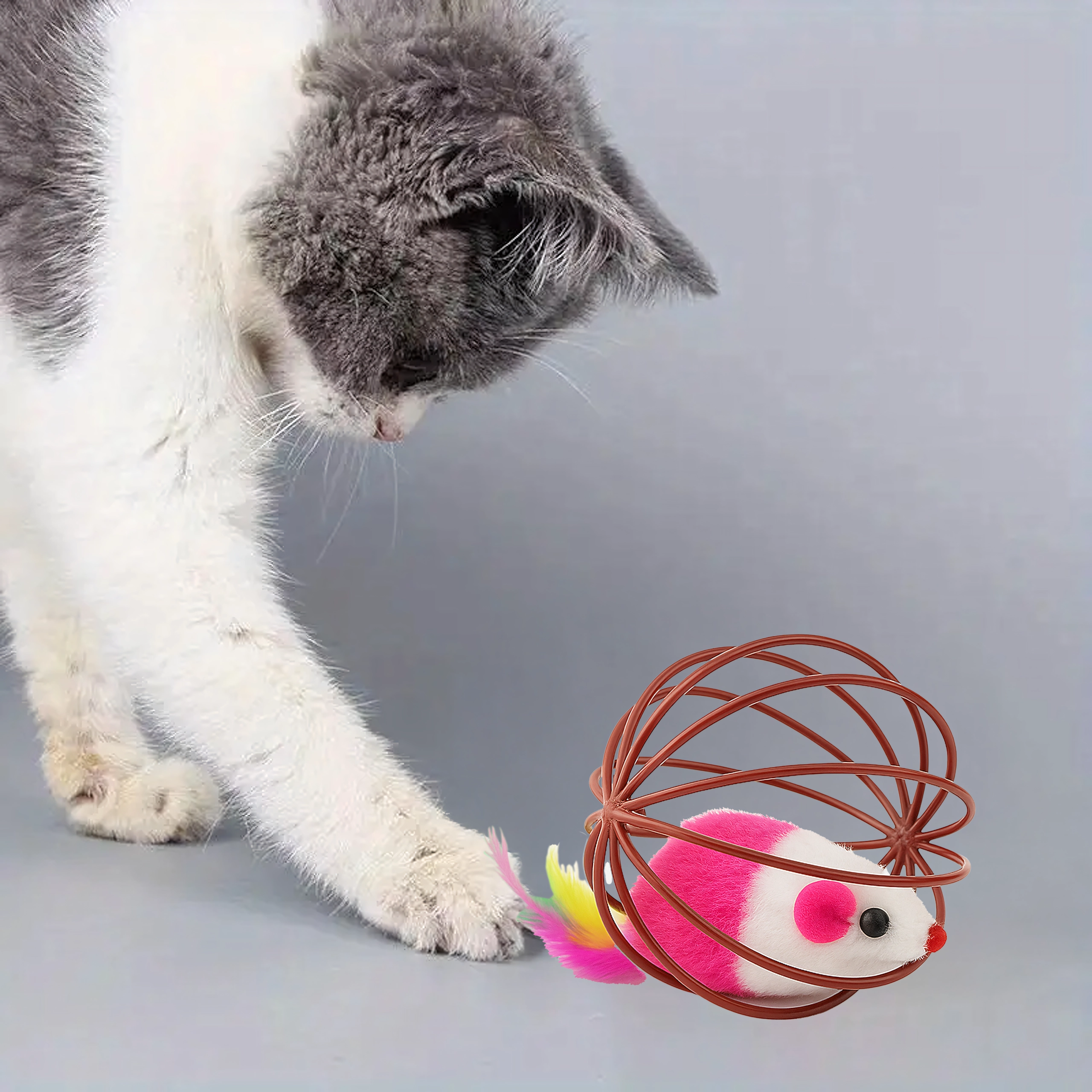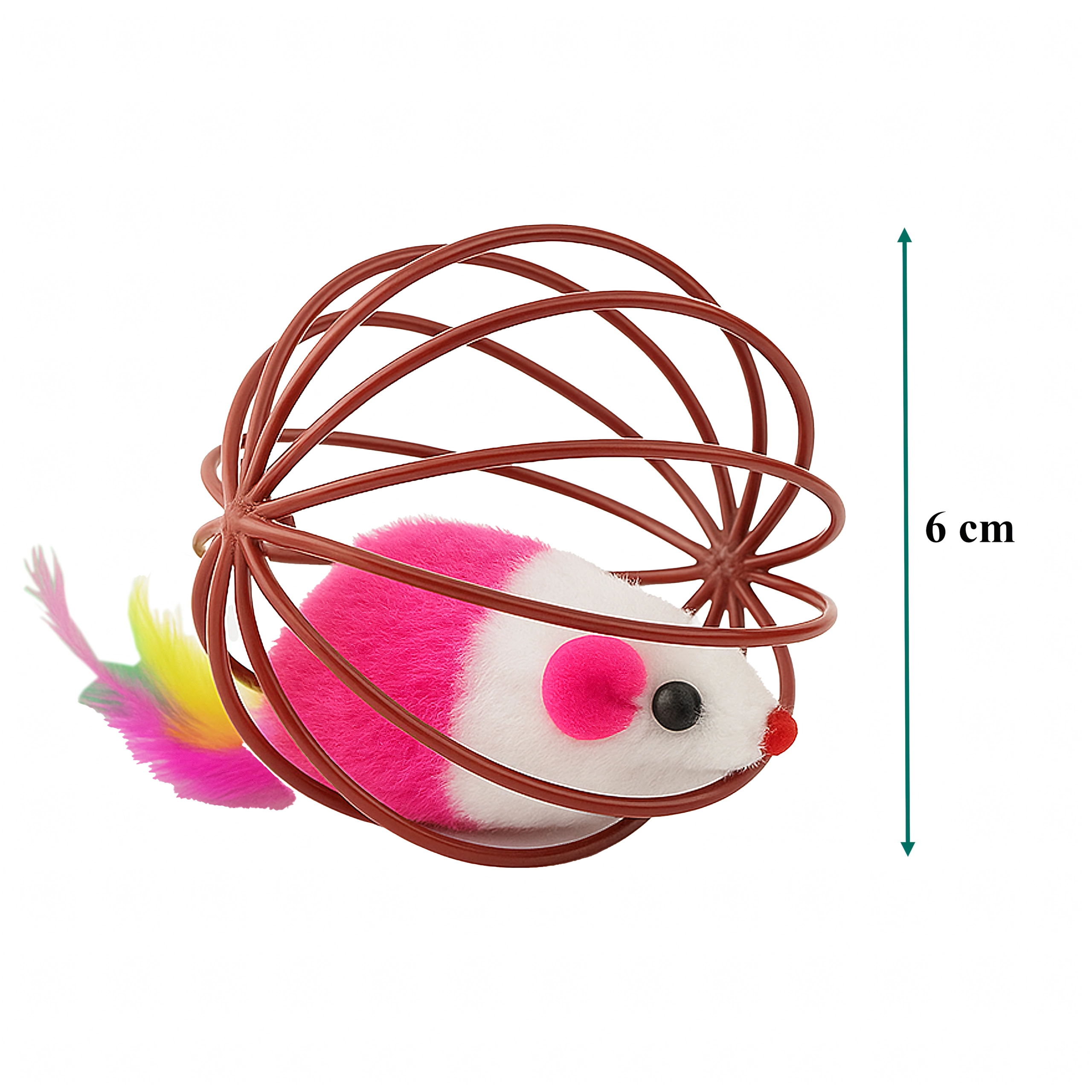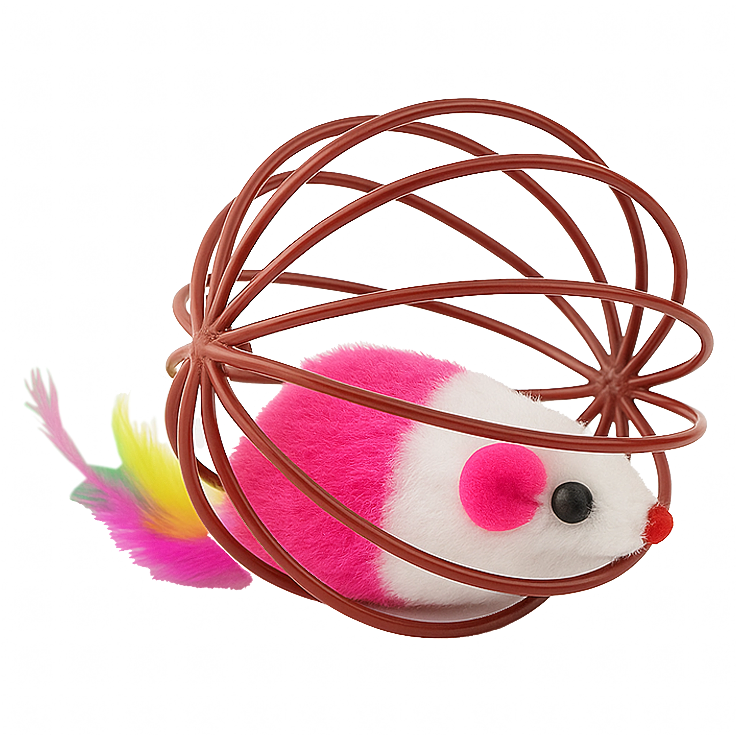See nutikas mänguasi ühendab kerge traadist palli, mis veereb sujuvalt üle põranda, ning sees paikneva plüüsshiire. Liikumisel teeb hiir õrnalt kõrinat ja värvilised suled meelitavad kassi edasi jälitama, käpaga togima ja jahti pidama. Ideaalne nii kassipoegadele kui ka täiskasvanud kassidele, kes vajavad energia väljaelamist ja loomuliku käitumise toetamist.