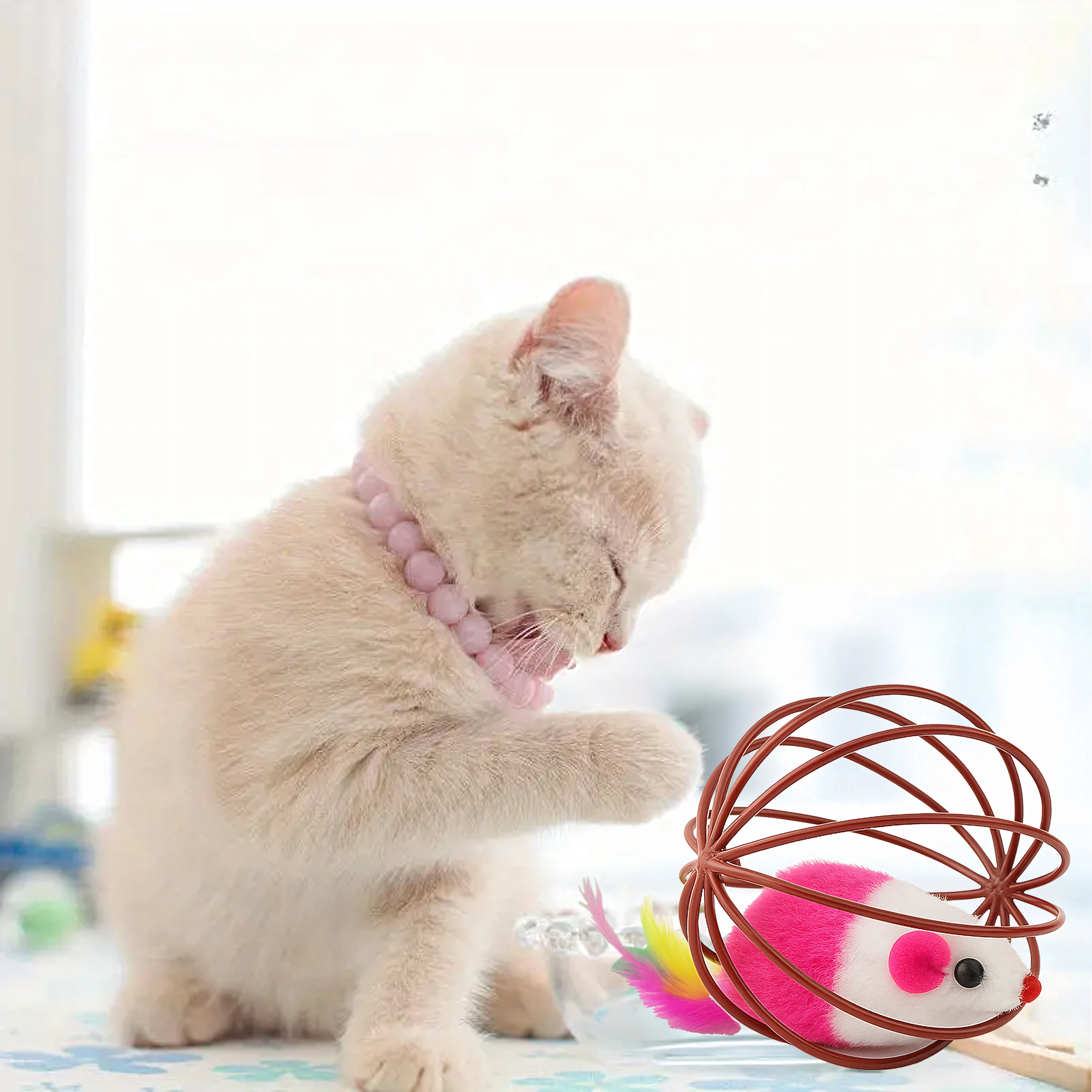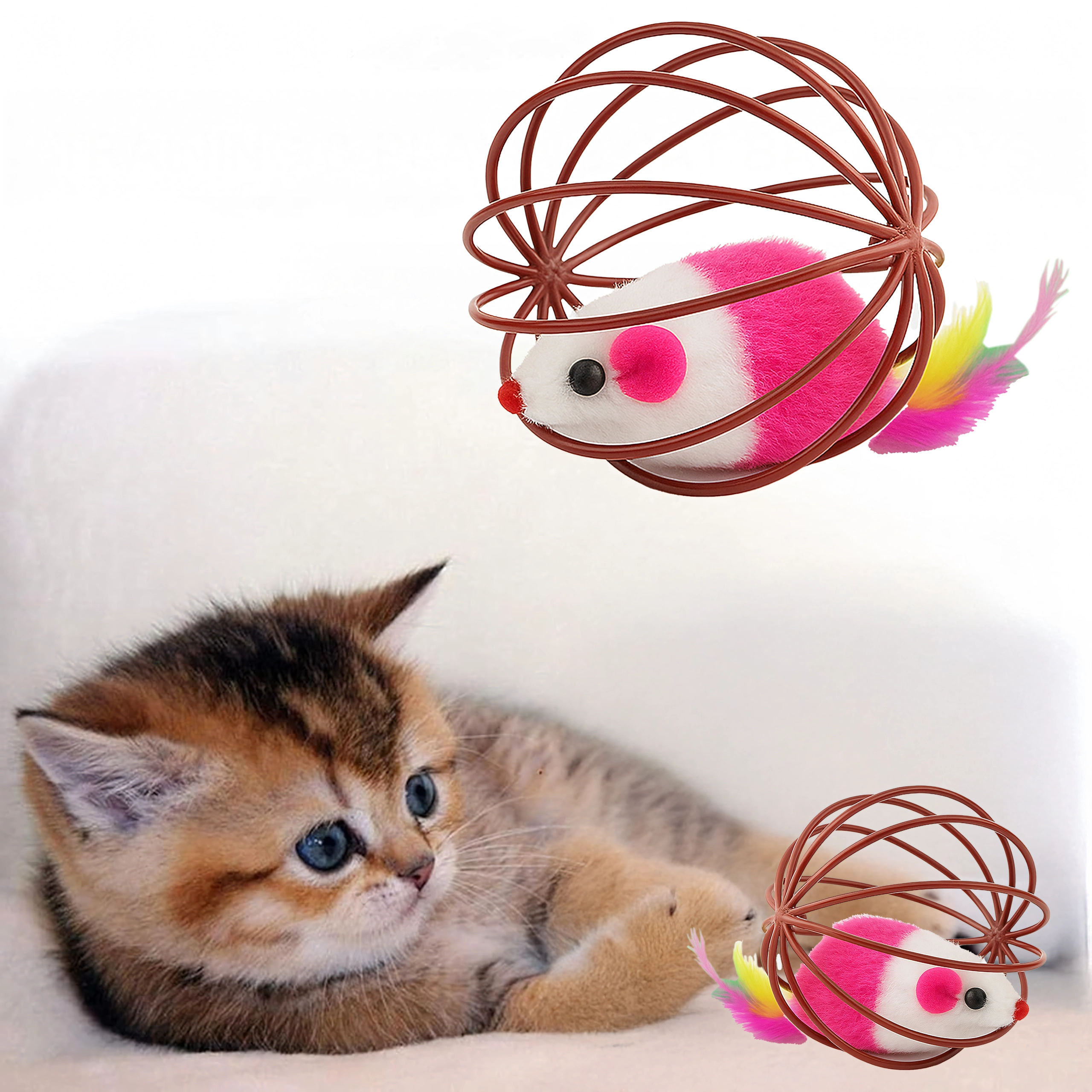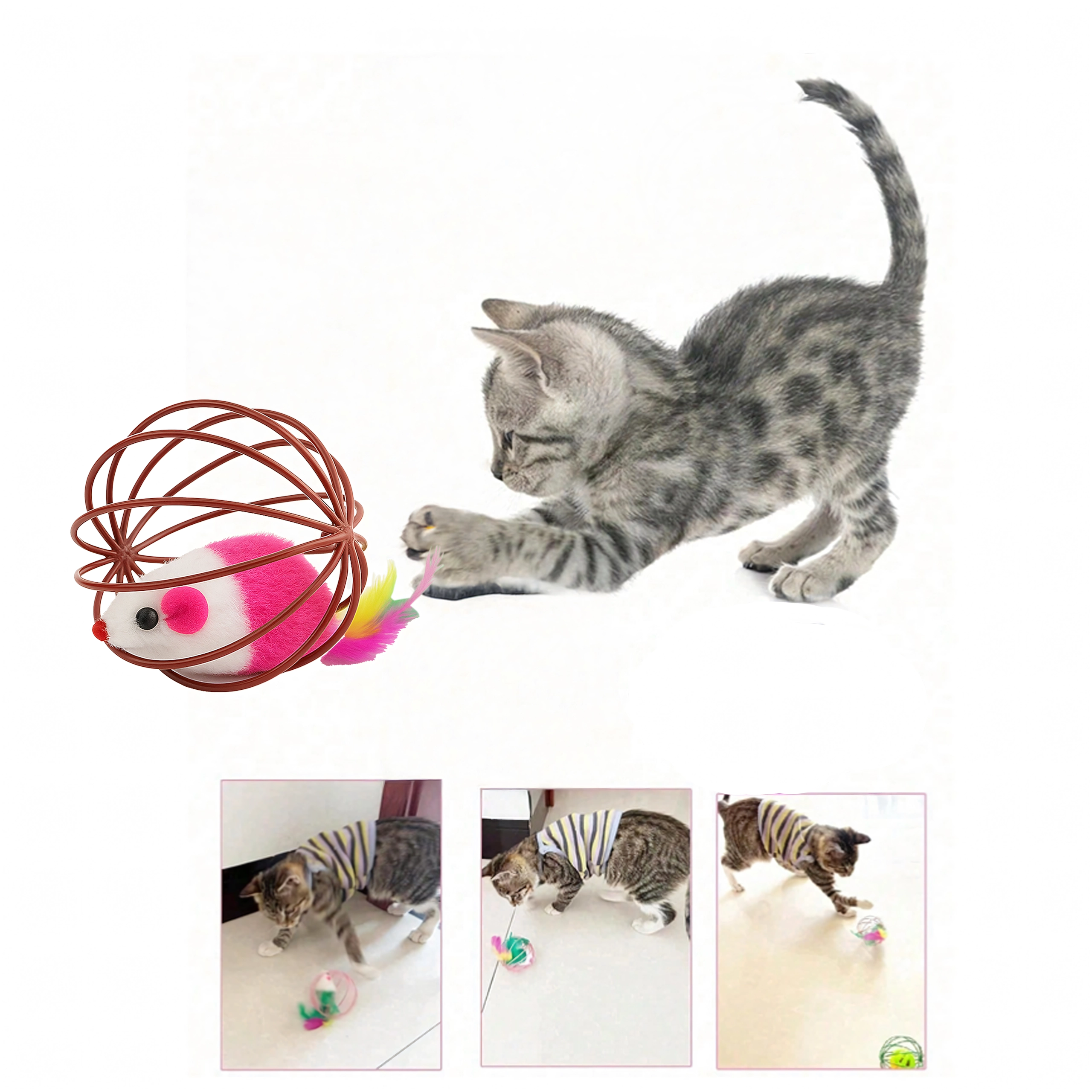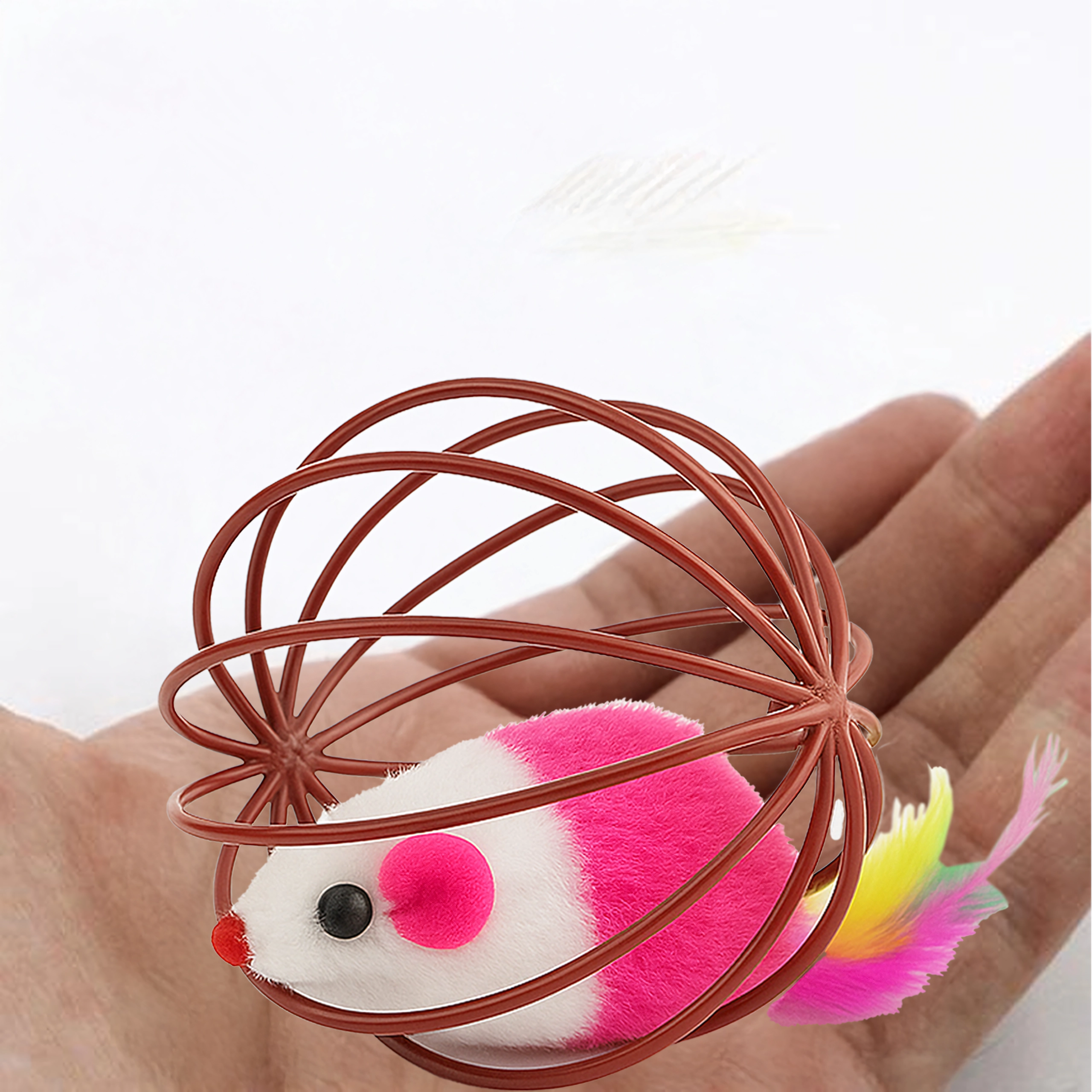 See nutikas mänguasi ühendab kerge traadist palli, mis veereb sujuvalt üle põranda, ning sees paikneva plüüsshiire. Liikumisel teeb hiir õrnalt kõrinat ja värvilised suled meelitavad kassi edasi jälitama, käpaga togima ja jahti pidama. Ideaalne nii kassipoegadele kui ka täiskasvanud kassidele, kes vajavad energia väljaelamist ja loomuliku käitumise toetamist.