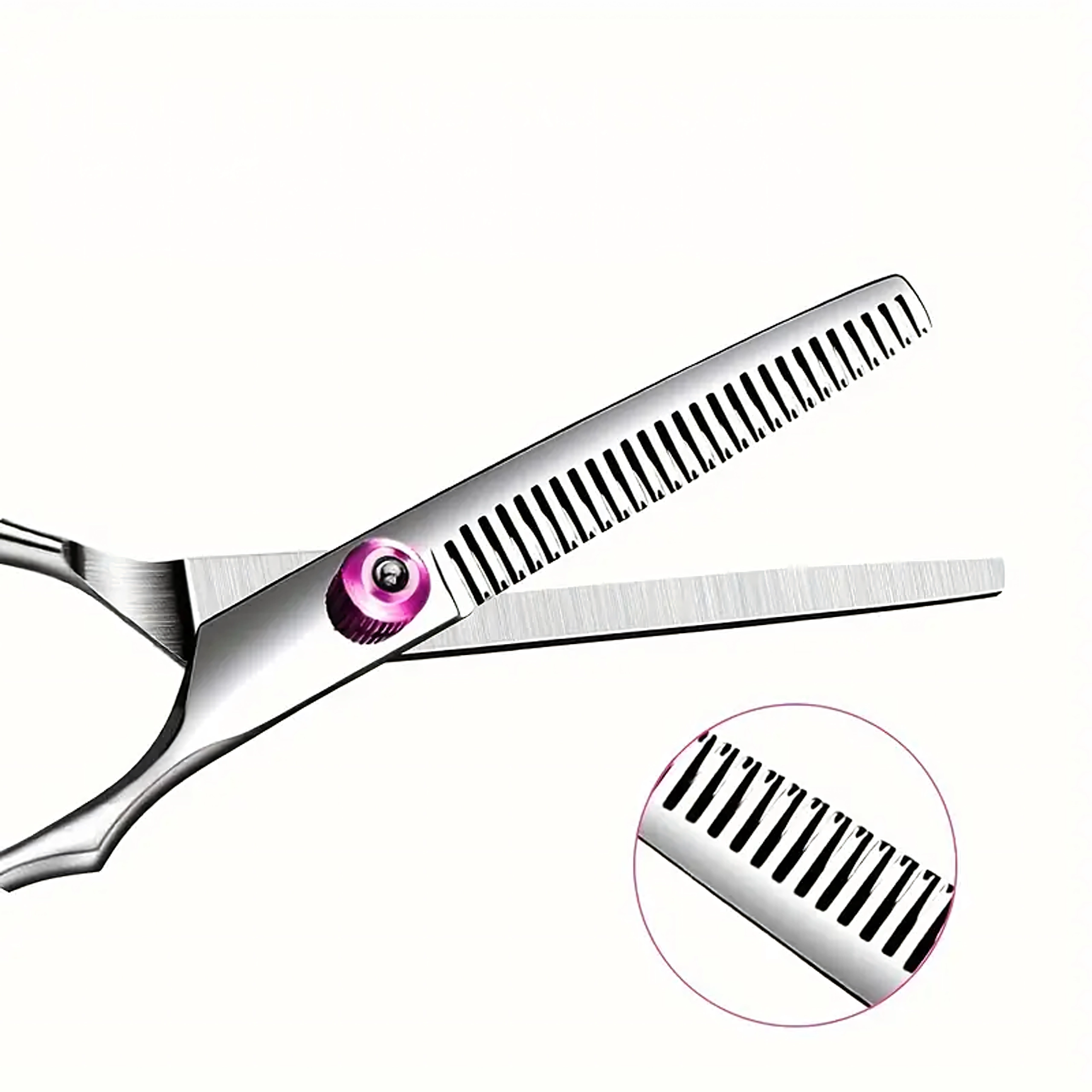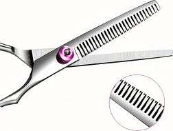 Efilaator-käärid peente hammastega vähendavad mahtu sujuvalt ja pehmendavad üleminekuid – ideaalne loomuliku tulemuse saavutamiseks ilma teravate joontega.