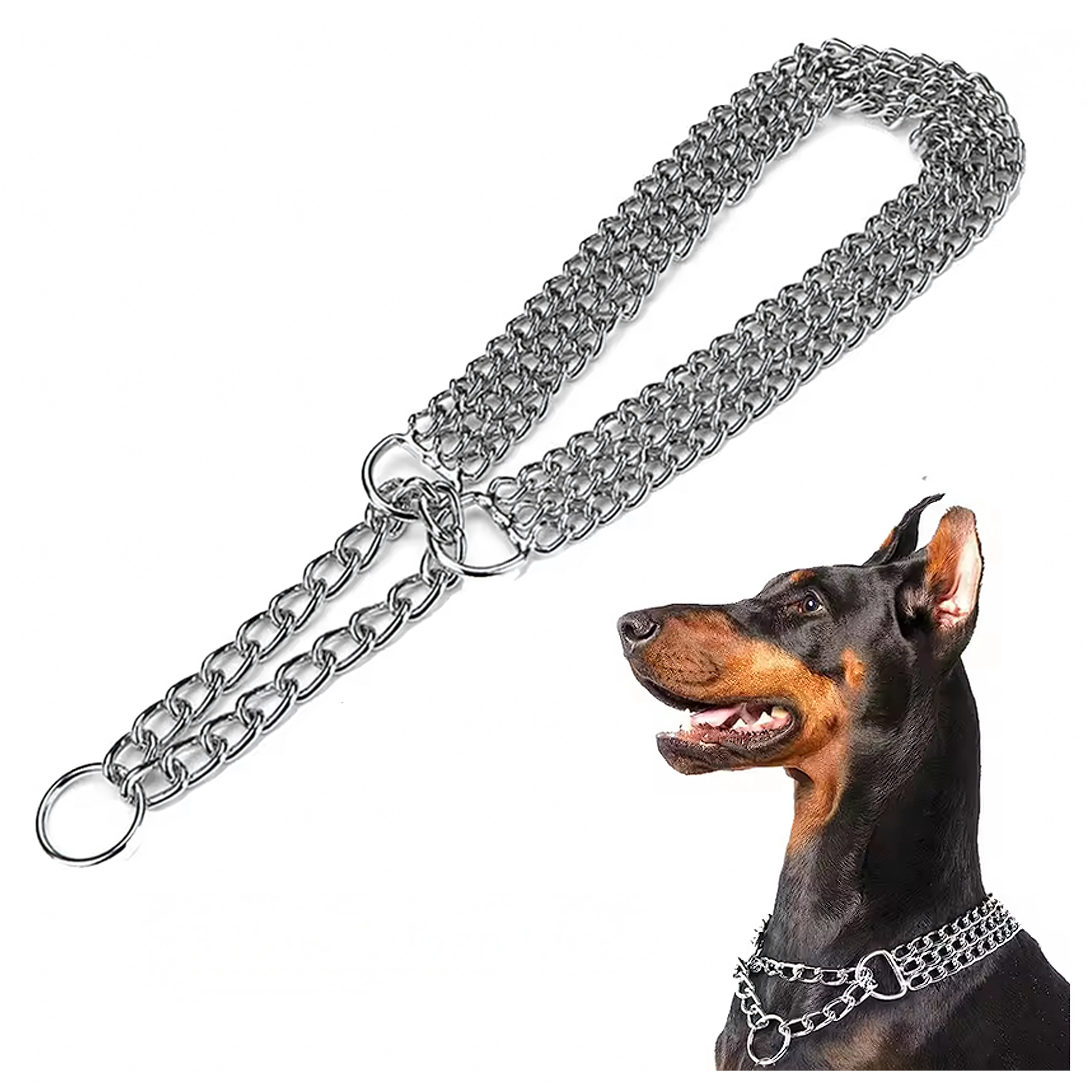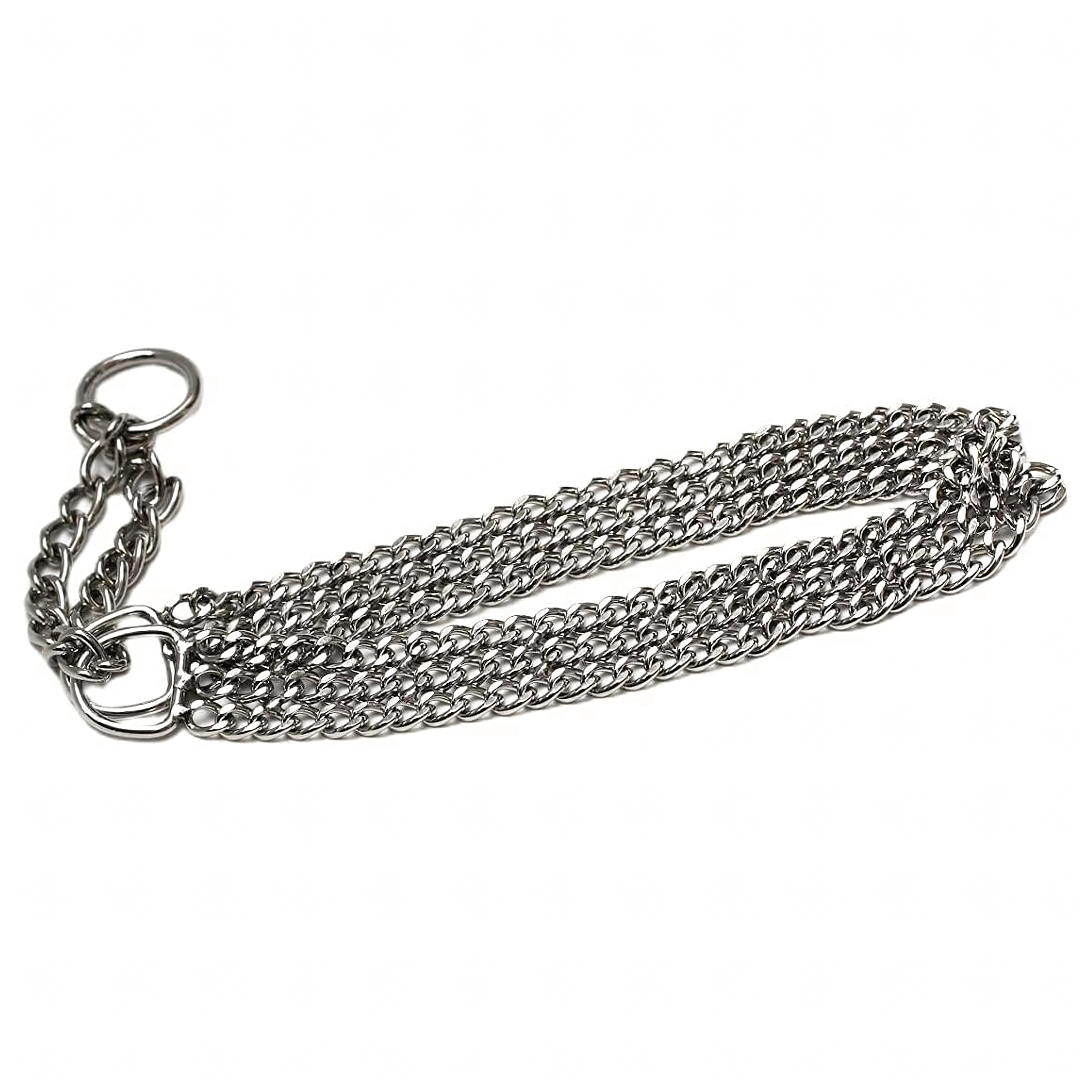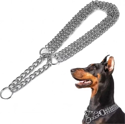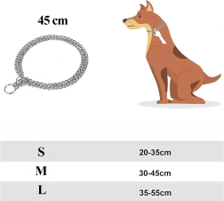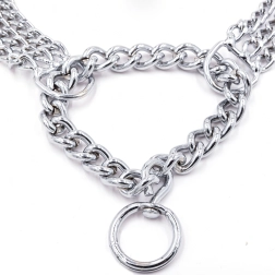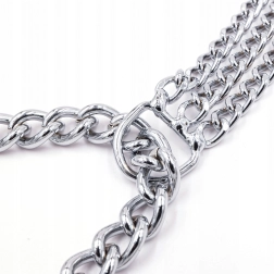See tõmbekett-kaelarihm on valmistatud kvaliteetsest kroomitud terasest, mida iseloomustab kõrge tugevus, korrosioonikindlus ja sile pind koera mugavuseks. Kolmekordne kett jaotab surve ühtlaselt ja võimaldab täpset ning tundlikku kontrolli treeningu ajal.