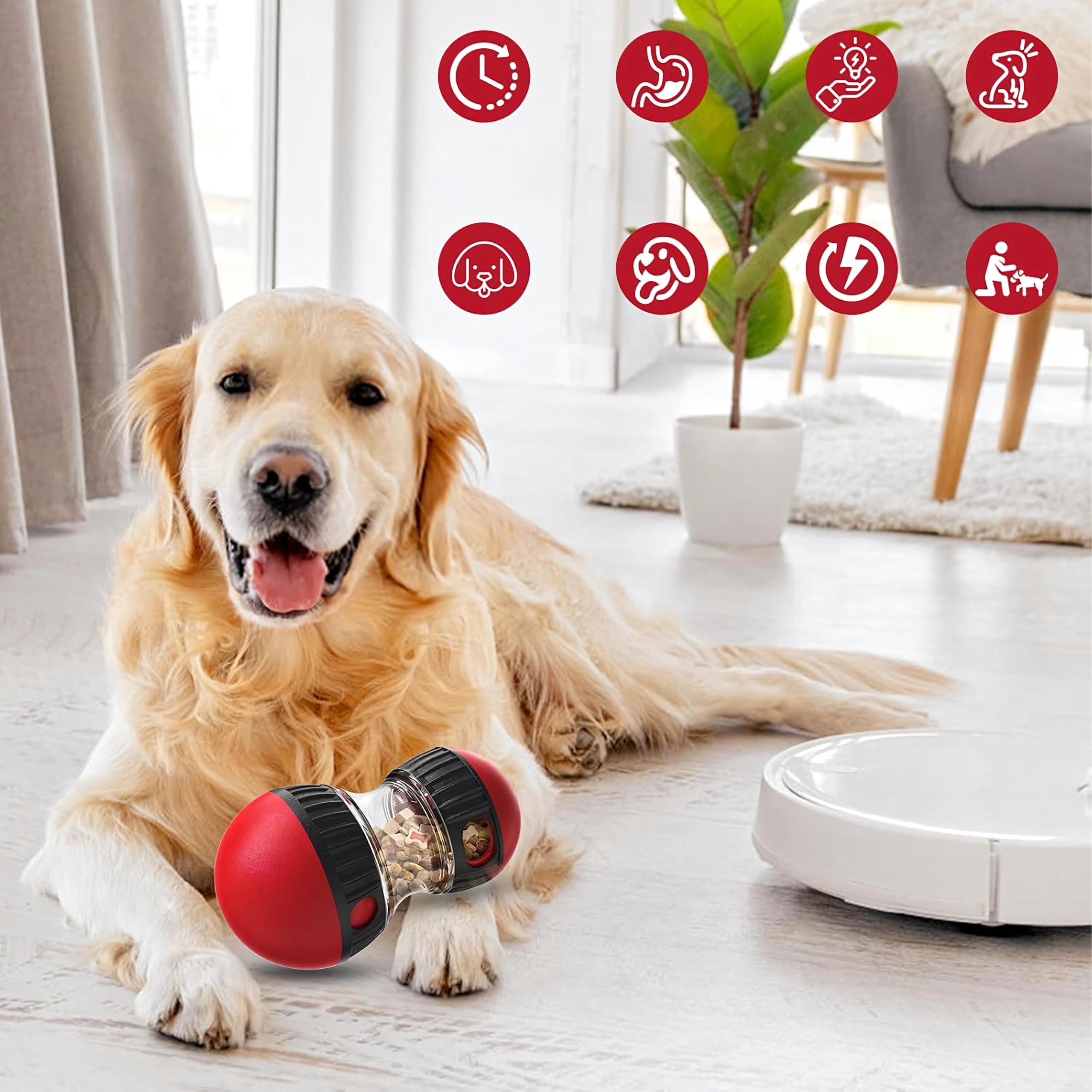 Tänu vastupidavale ABS-konstruktsioonile ja libisemisvastastele elementidele sobib mänguasi igapäevaseks kasutamiseks nii toas kui aias. Seda on lihtne täita, lahti võtta ja puhastada, mistõttu sobib see ideaalselt regulaarseks interaktiivseks toitmisrutiiniks ja koera vaimseks rikastamiseks.