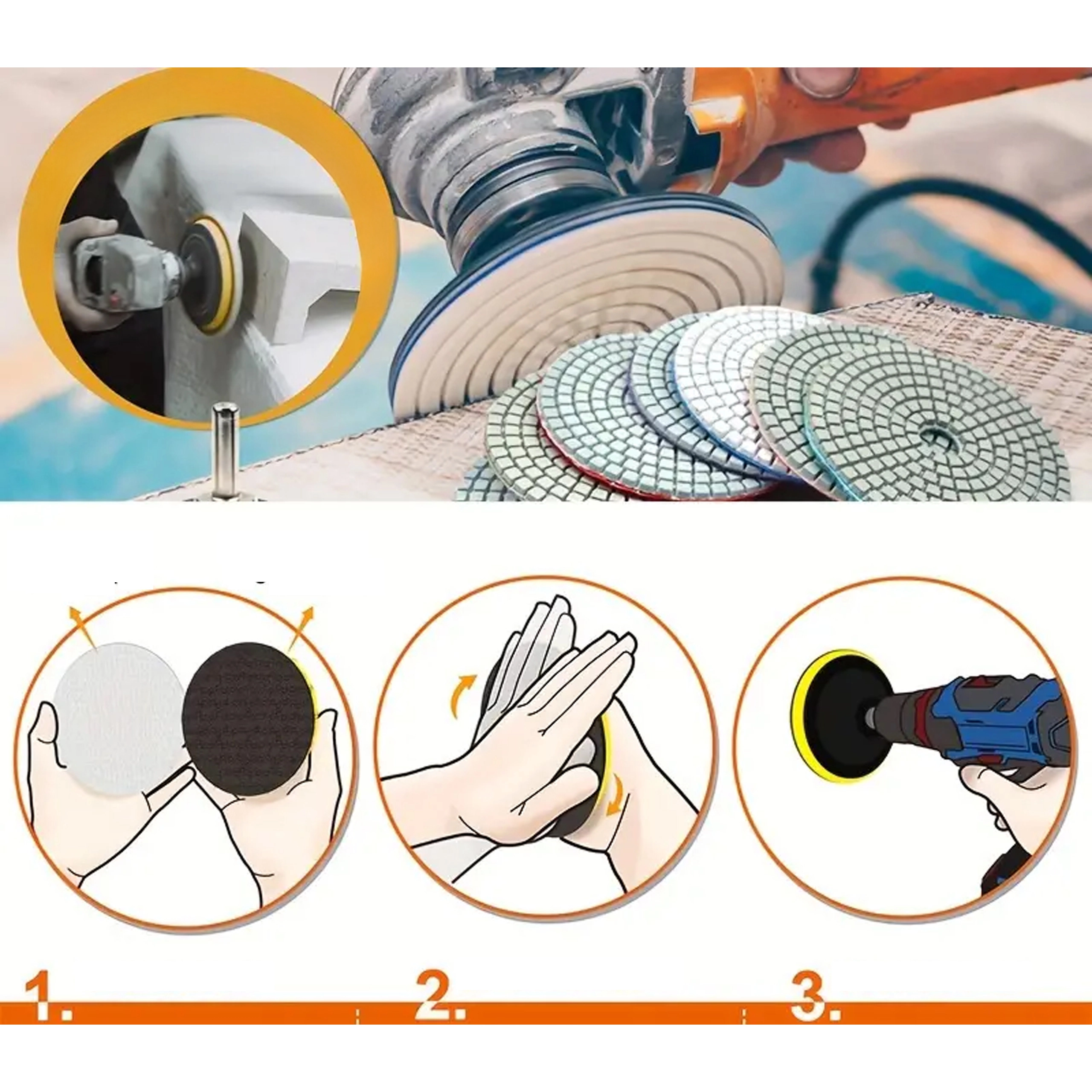 Kasutamiseks gres-plaadil, keraamikal, looduskivil, marmoril ja graniidil. Sobivad servadele ja tasapindadele, nii töökodadesse, paigaldustesse kui renoveerimiseks. Ühilduvad tavaliste nurgalihvijate ja poleermasinate ning vastava takja-alusega talladega.