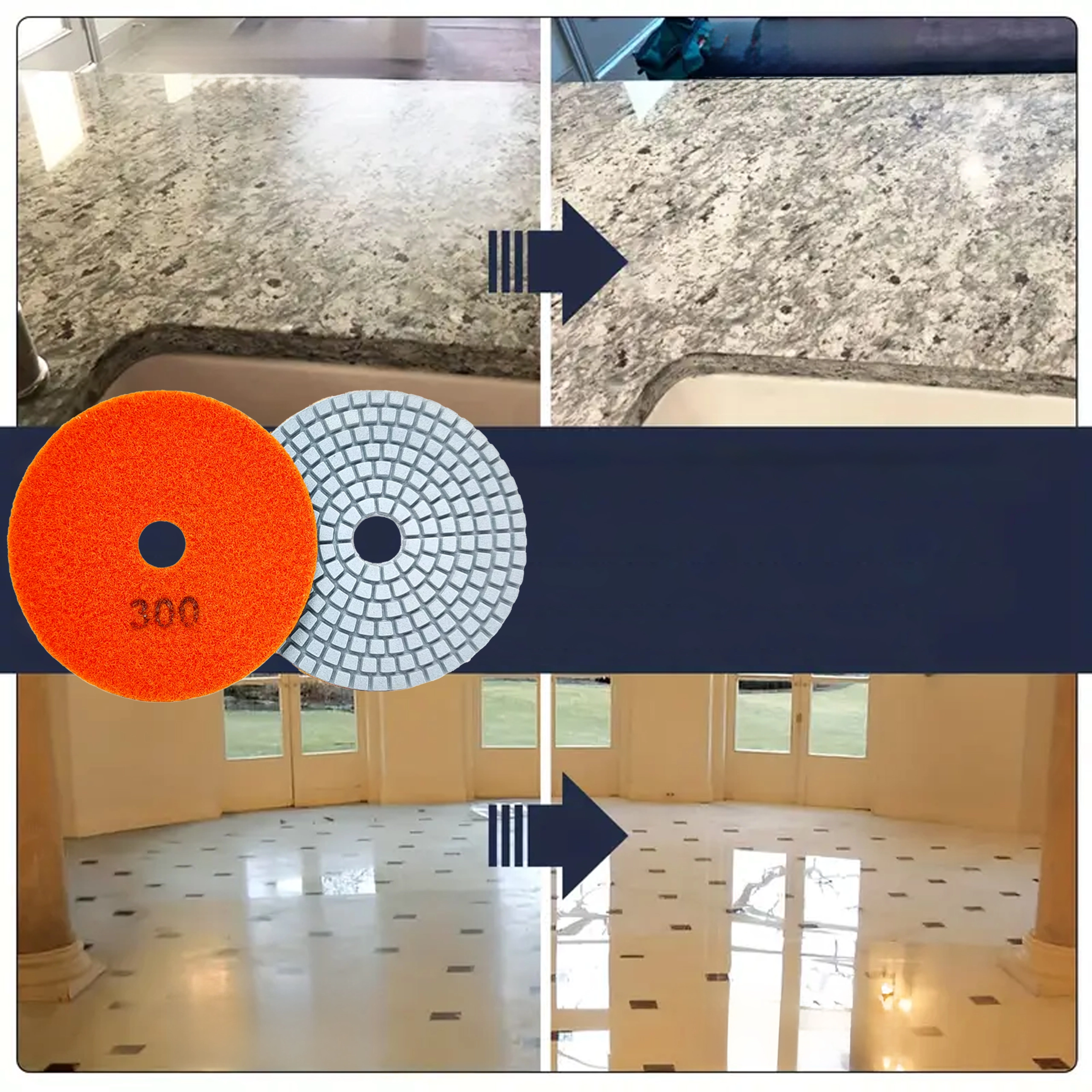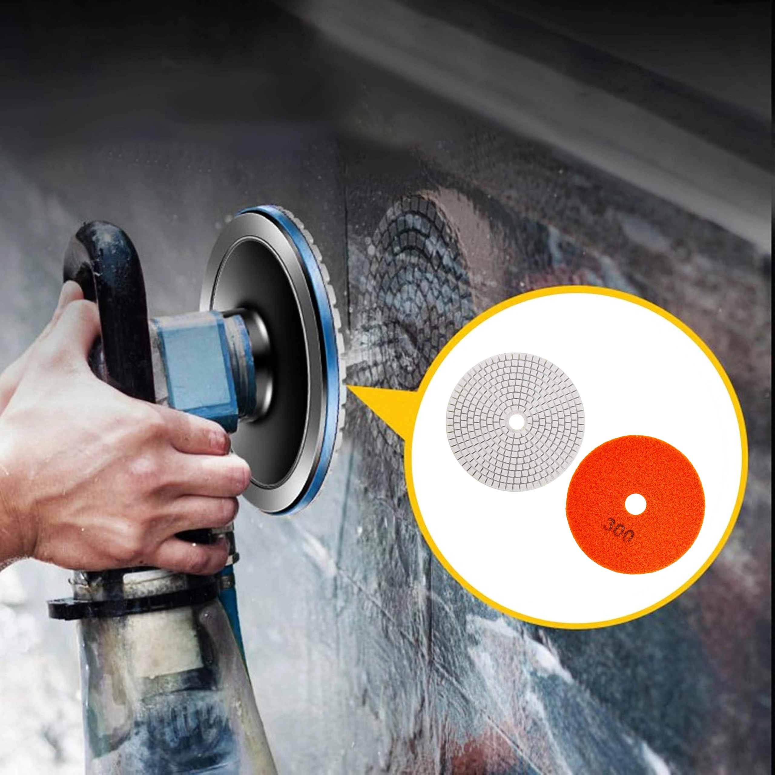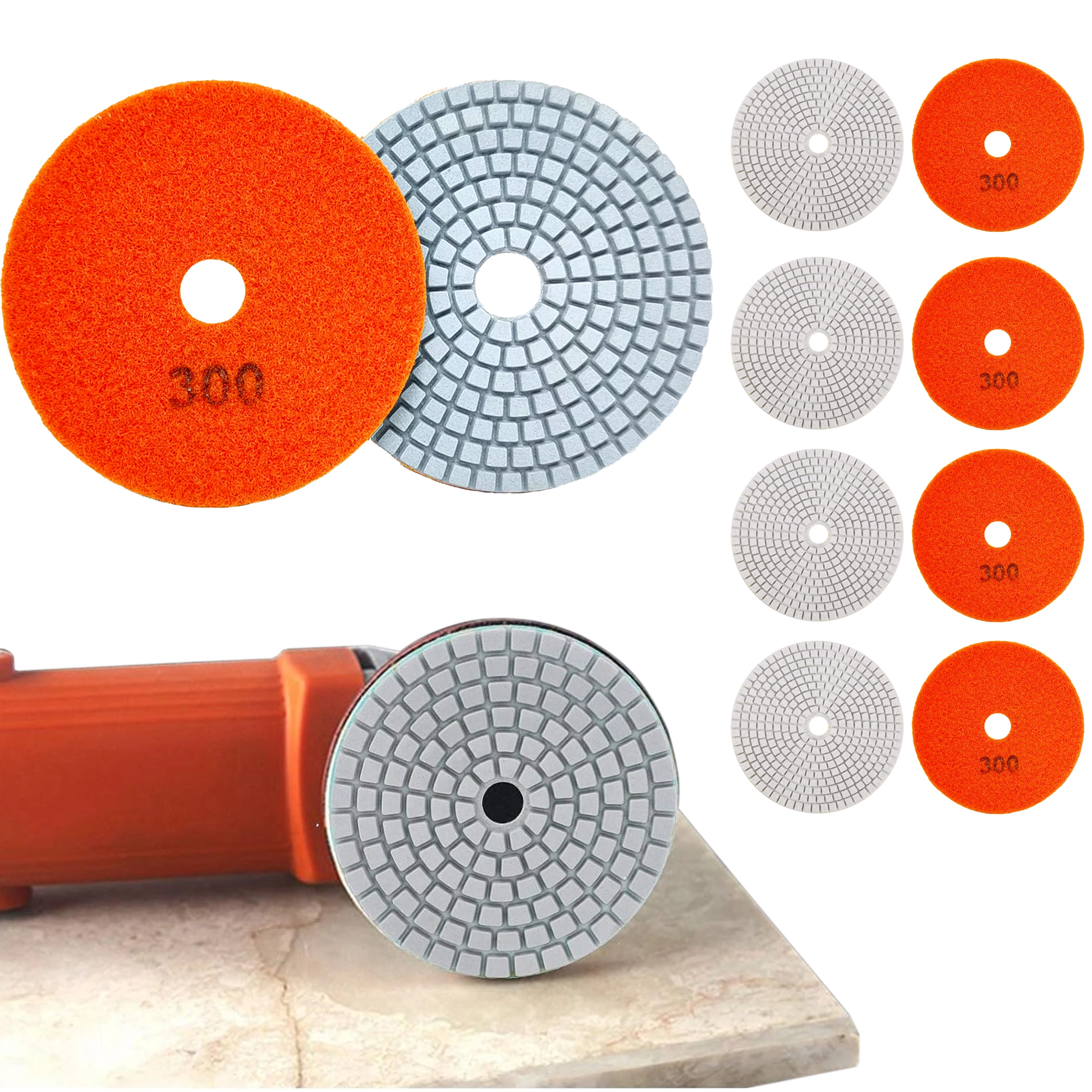 Terastusega 300 teemantkettad on ideaalsed vahelihvimiseks ja eelpoleerimiseks kõvadel materjalidel. Paindlik segmenteeritud struktuur ja keskava tagavad sujuva vee ja muda äravoolu, stabiilse töö ning puhtama tulemuse. Oranž takjakinnitusega tagakülg kiirendab vahetust ilma tööriistadeta.