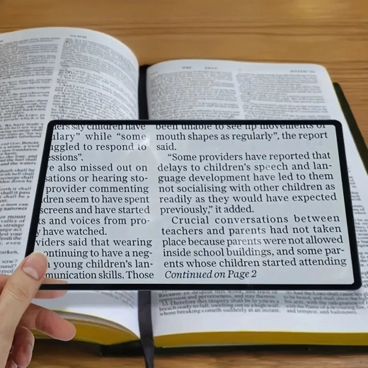 Praktiline lehelupe painduva plastläätsest lehega suurendab teksti ja detaile kuni 200%. Tänu õhukesele teostusele ja kergale raamile istub see hästi käes, saad asetada otse lehele ja lugeda ilma silmi pingutamata.