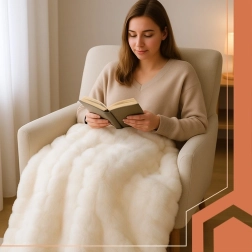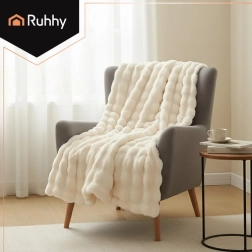 Naudi kohest mugavust pehme ja siidise RUHHY pleediga universaalses valges toonis. See on kerge, soe ja erakordselt meeldiva puudutusega. Kahekordne konstruktsioon – pealispind nagu küülikukarva imitatsioon ja alumine pehme plüüs – tagab maksimaalse mugavuse. Lihtne hooldus pesumasinas 30 °C juures, topilisekindlus ja stiilne välimus teevad sellest ideaalse lisandi nii magamistuppa kui ka elutuppa.