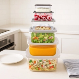 Hoidke köök korras universaalse toidunõude komplektiga. Erinevad mahud 275 ml kuni 3,2 l katavad kõik alates suupistetest ja salatitest kuni pastade või küpsetamisaineteni. Läbipaistvad seinad võimaldavad kiiret sisukontrolli ilma avamata ning tihedalt sulguvad kaaned tagavad kindla lekkevabaduse nii hoiustamisel kui ka kaasaskandmisel.