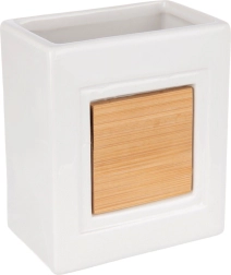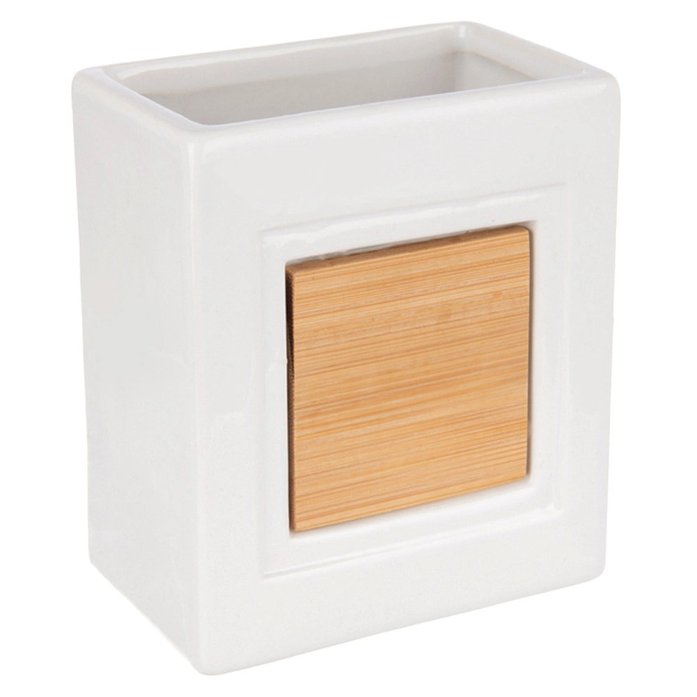 Läikiv valge pind koos bambuspaneeliga mõjub elegantselt ja hoiab harjad ning pisiesemed käepärast.