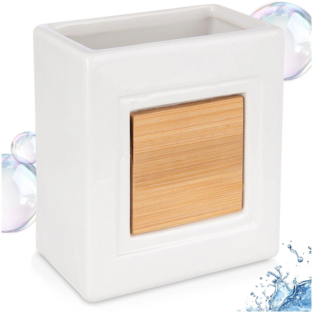 See stiilne tops sobib suurepäraselt igasse vannituppa. See ühendab vastupidava dolomiitkeraamika ja loodusliku bambuse, luues puhta ja samas hubase ilme. Avatud ülaosa võimaldab ülevaatlikku hoiustamist nii harjadele, pastale kui ka meigipintslitele.