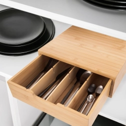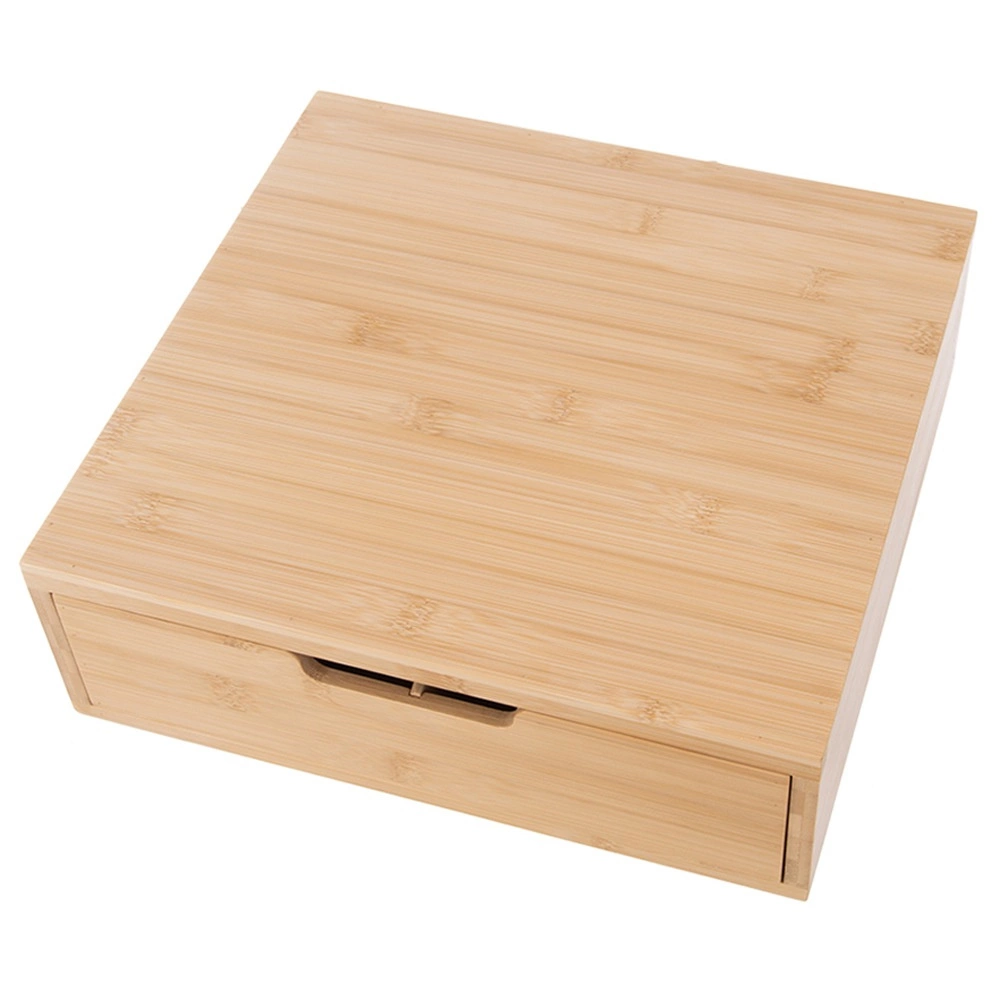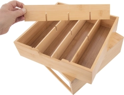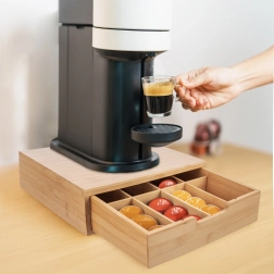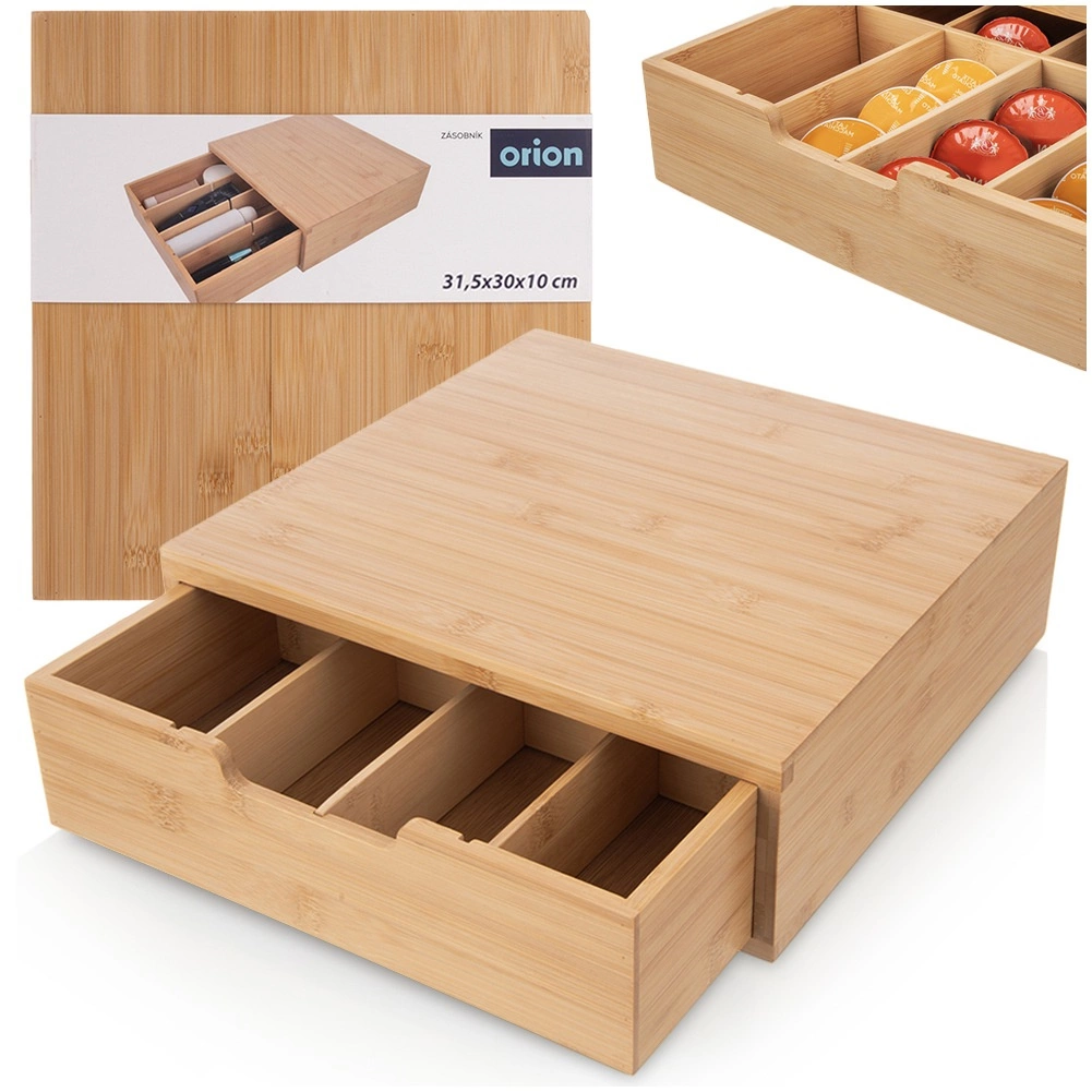 Elegantne naturaalsest bambusest korraldaja ühendab stiilse välimuse ja funktsionaalse jaotuse. Vaheseintega sahtel võimaldab selgelt sortida kapsleid, teekotikeseid, maitseaineid ja muid pisitarbeid. Kohanda sisemist jaotust eemaldatavate osade abil täpselt oma vajadustele.