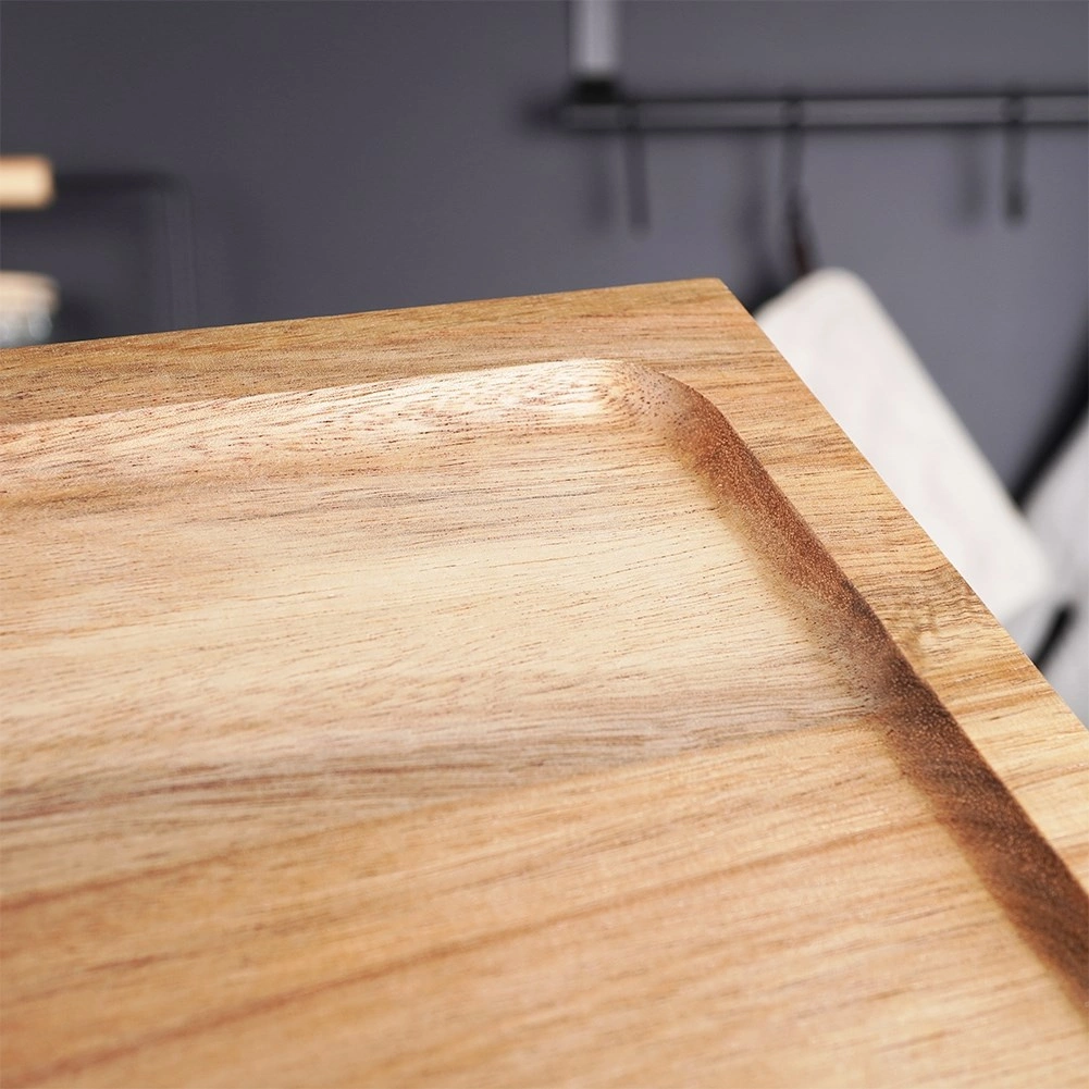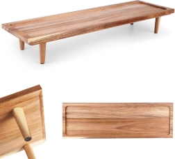 See universaalne jalgadel serveerimislaud paistab silma puhta disaini ja funktsionaalsusega. Tugeva akaatsiapuidu tõttu on see vastupidav niiskusele ja deformatsioonidele ning sobib suurepäraselt igapäevaseks kasutamiseks köögis ja pidulaual. Tõstetud servad hoiavad toitu paigal ja lihtsustavad kandmist.