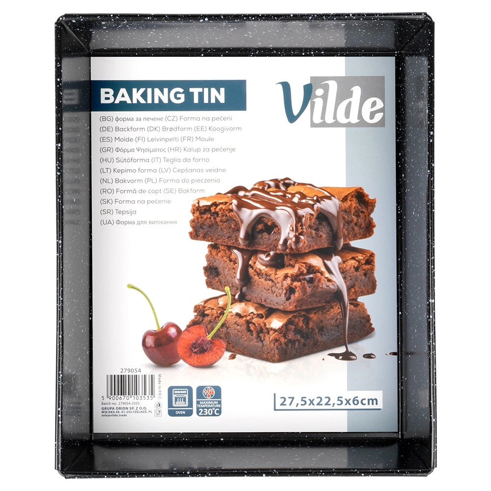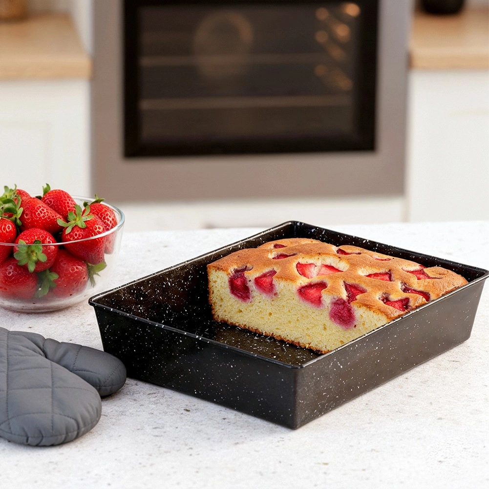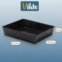 Praktiline ristkülikukujuline vorm mõõtudega 27,5 × 22,5 × 6 cm on suurepärane valik igapäevaseks küpsetamiseks ja pidulike roogade valmistamiseks. Süsinikteras juhib soojust suurepäraselt, tagades ühtlase läbiküpsemise ja kindlad tulemused nii magusate kui soolaste toitude puhul.