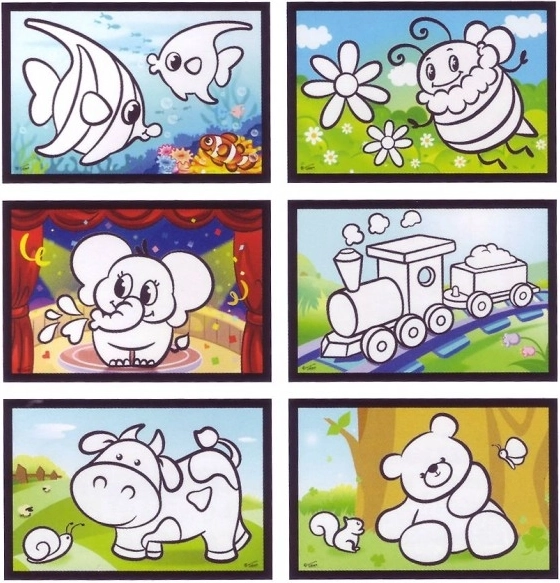 See loominguline komplekt rõõmustab nii väikseid kunstnikke kui ka vanemaid. Tänu spetsiaalsele valgele kihile kaartidel ilmuvad värvid kokkupuutel veega ja kaovad uuesti kuivamisel. Nii on meisterdamine ilma värvide ja segaduseta ning ideaalne nii koju kui ka reisile.